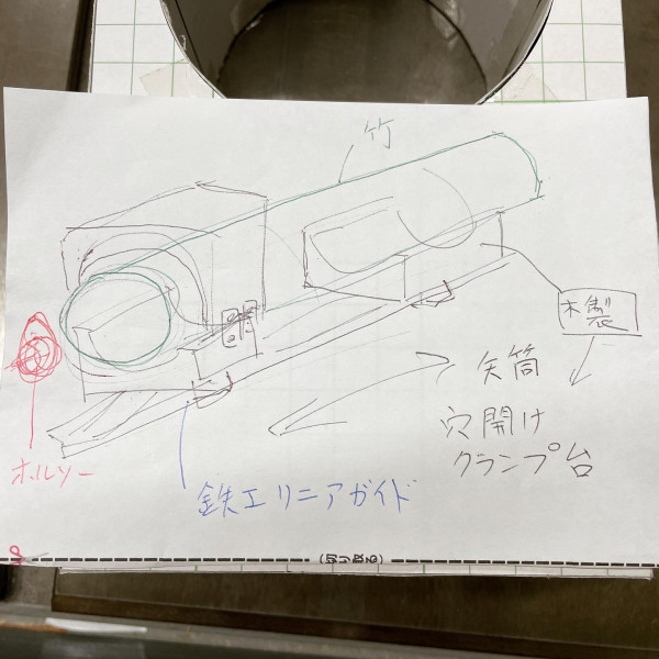 年末にとても特殊な案件を。 お客様は方眼紙で模型を作り、エクセルで図面を描き、うちにお持ちになられました。 弓道の矢を入れる矢筒の孟宗竹の加工クランプ台の製作依頼🎍 鉄工リニアガイドの上に載せて、竹をクランプする為に使う治具です。特注のホルソーで1m位の竹を貫通させるそうです。1mを節だけ貫通させる為には越えなければならないハードルが沢山ある事をお伝えし、一度はお断り致しましたが、それでも熱心に独学で研究され一年かけて一つ一つハードルをクリアされてご依頼していただきました。 南房総で弓道を長年やられていて、矢筒を作りたくなり、鉄工所や木工所に依頼して今後ご自分で加工して広めたいそうです。 なんと素晴らしい事でしょう! お客様の、DIYのそれとはまた異なった、「プロにお願いしたい」という熱意をとても感じました。 この熱意に真摯にお応えしたいです。実際はまだ検証前ですのでいろいろとハードルもあるかとは思いますが、お力になれる事があればと思います。頑張ってください。ありがとうございます。 室長 かく言う私も弓道部二段でした♪ #zukoushitu #木工 #woodworking