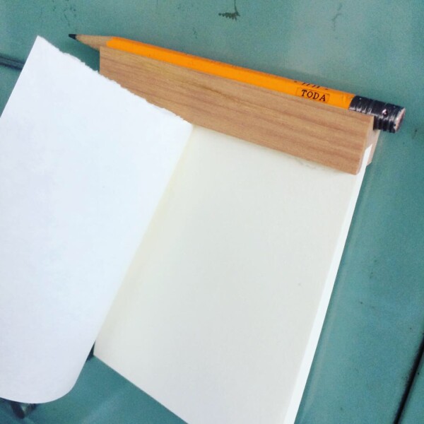この日のために急遽作った、A6の裏紙などが挟める「木のバインダー」