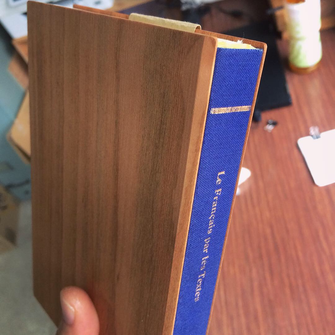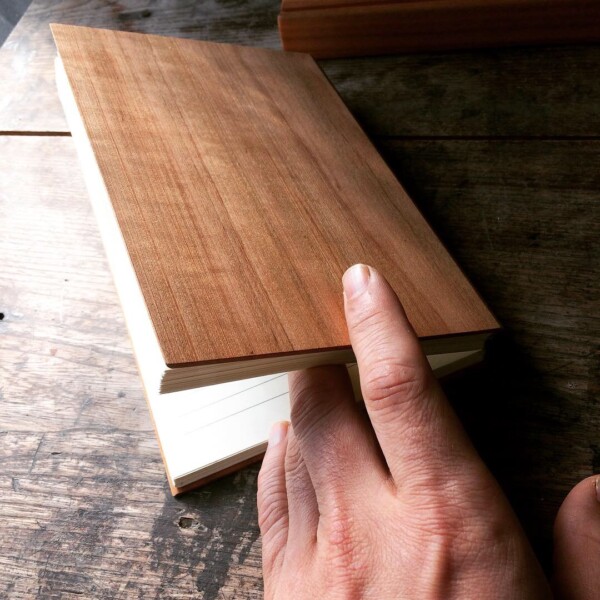箔押しの背表紙が美しい木とノート素材のバランスが美しいタイプです。(メーカー様に承諾を得ております。)