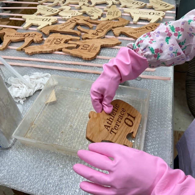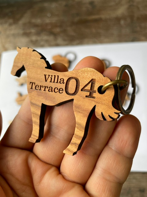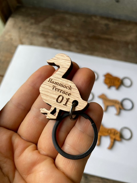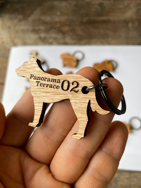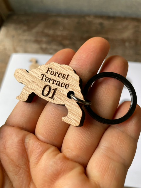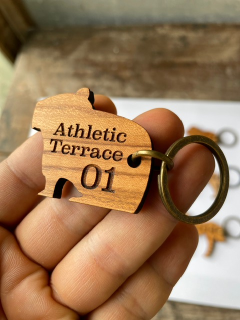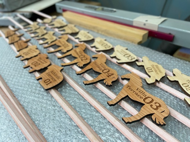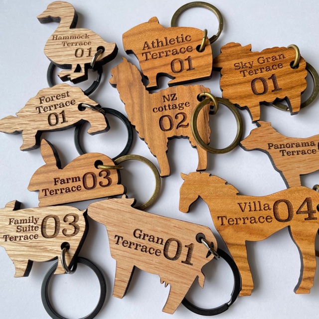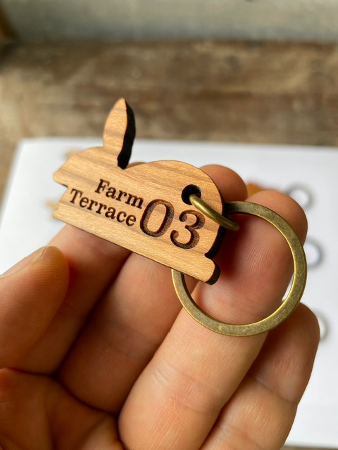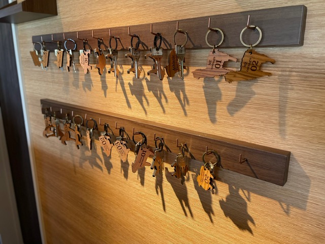 南房総のマテバシイ、ソメイヨシノと北米材のチェリーとメープルの対比で構成させていただきました。鍵と施設がとても分かりやすく可愛らしい仕上がりとなっております。お一つからお見積もり致します。ご予算に合わせたご提案も可能です。数量種類により単価は変わります。お気軽にお問い合わせください。