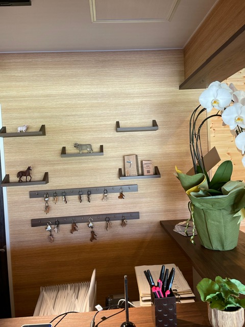 フロントにマテバシイの時計とパンフレットをおかせていただきました。