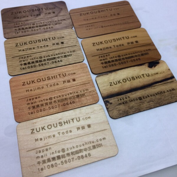 木の名刺 レーザー刻印にてオリジナルの木の名刺を製作いたします。5樹種よりお選びいただけます。