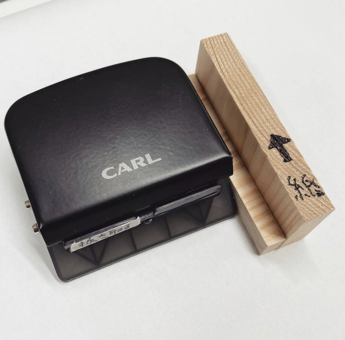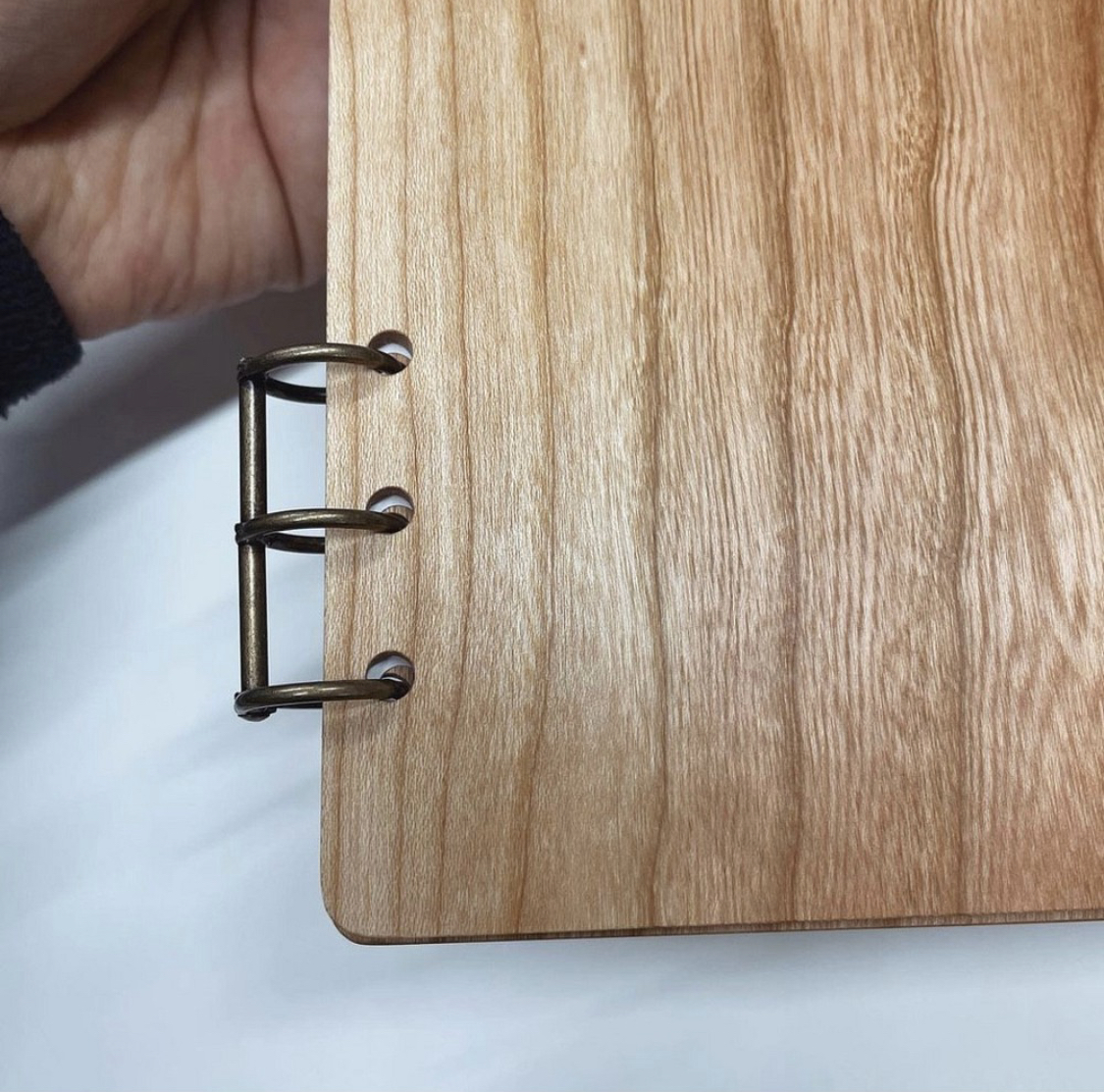 木のメニューファイルに直接紙を綴じるための穴を開ける特殊な3つ穴パンチングです。サイズに合わせて木のガイドをお付け致します。