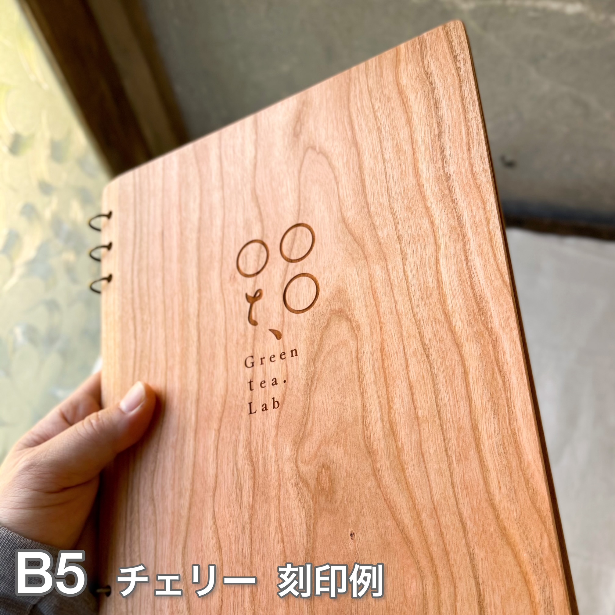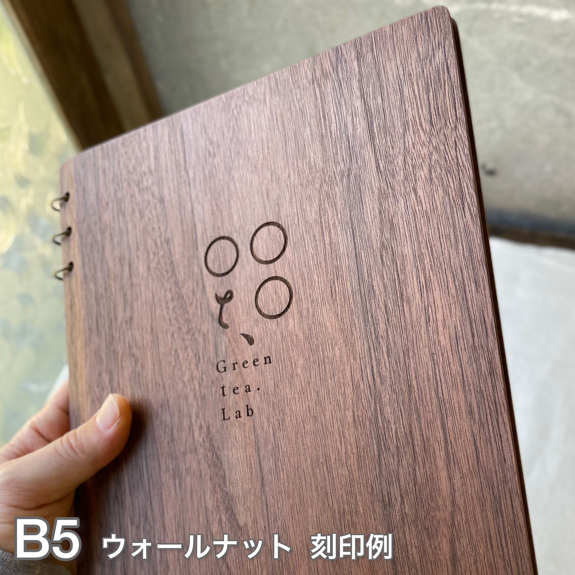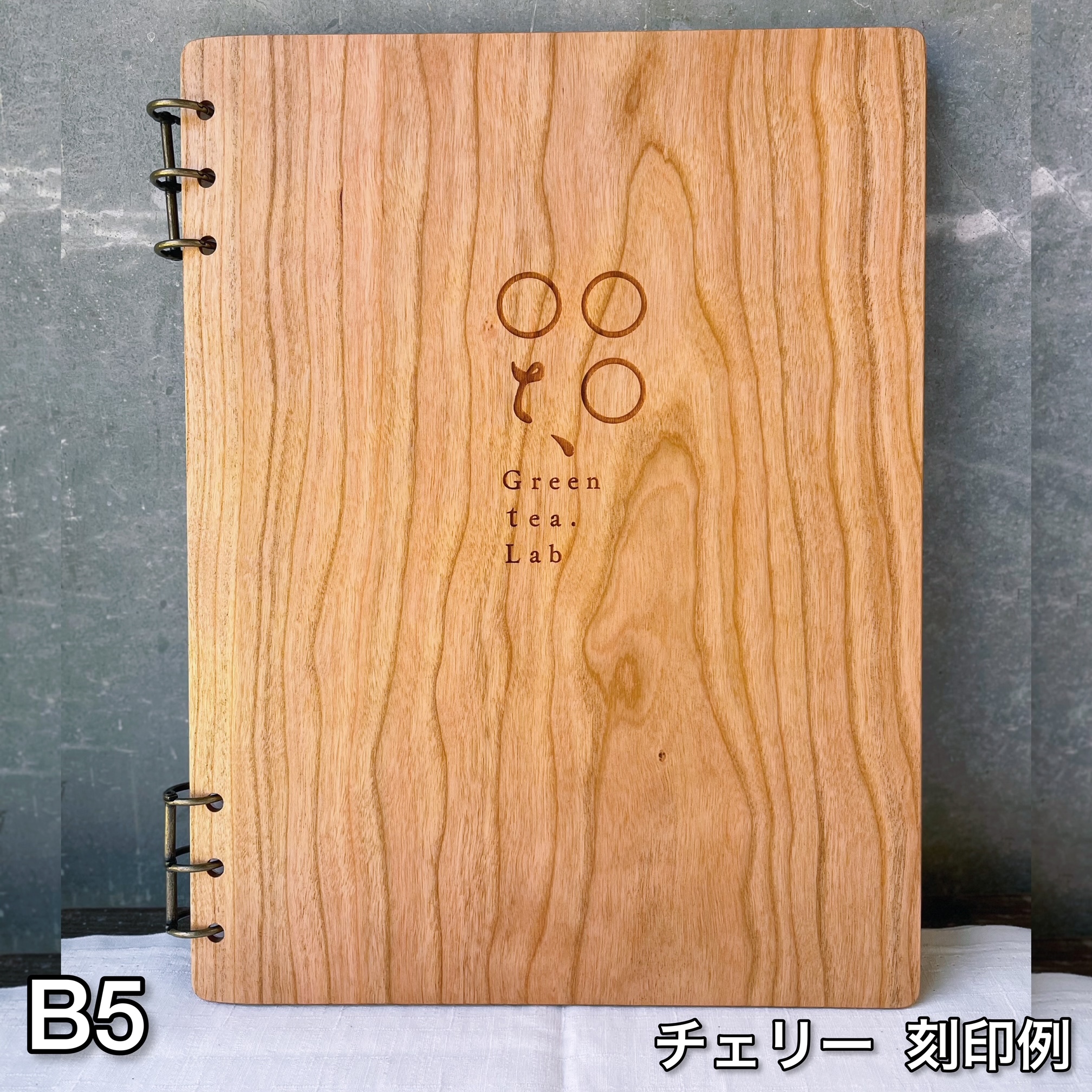 木の メニューブック フォトアルバム5mm無垢一枚板。安価な薄皮木目貼り合わせ板とは異なります。色や木目が綺麗な堅木(反りが出やすく加工が難しかった)に、反りを軽減する特殊な塗装方法を採用。「ありそうでない」天然木の色をそのまま活かした、無着色の木製リングメニューです。