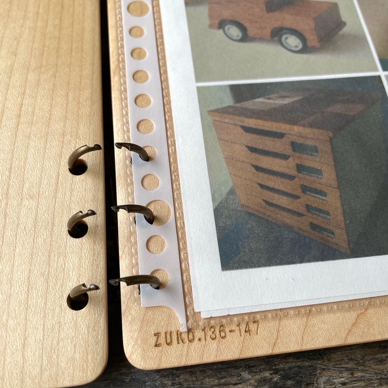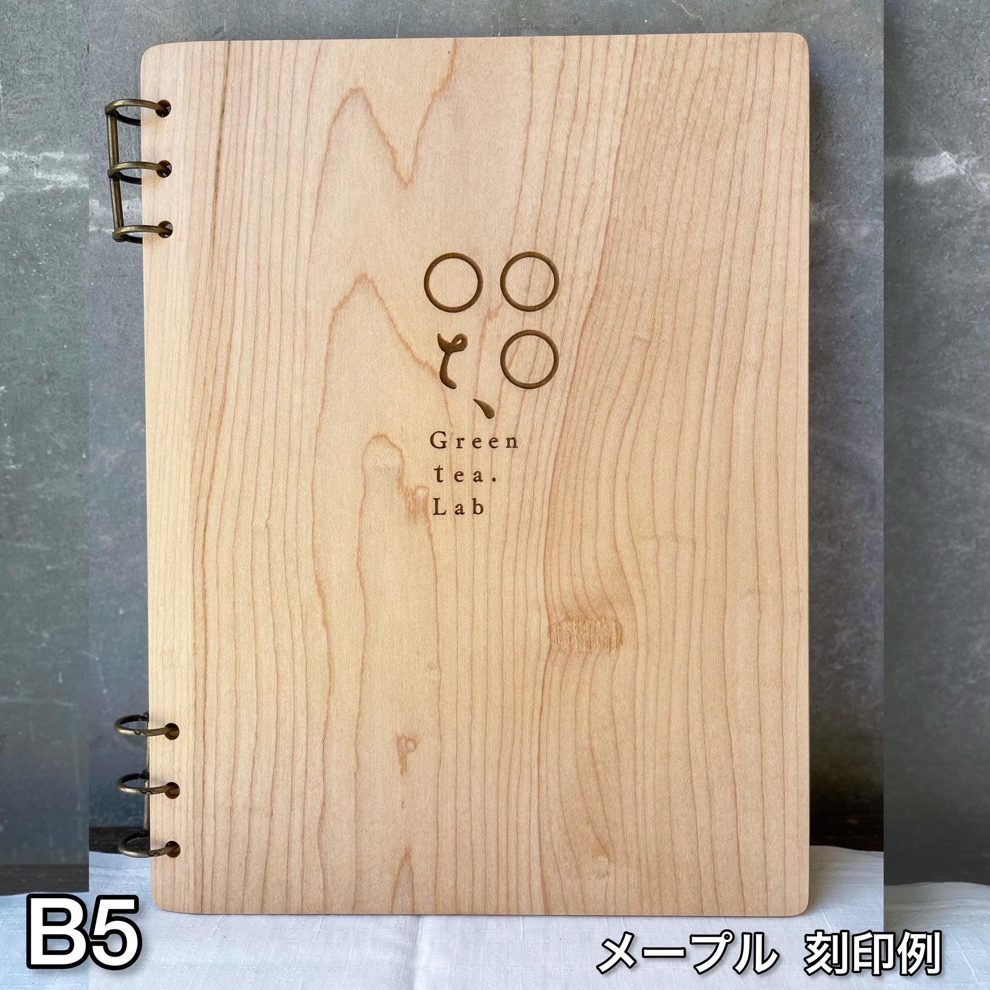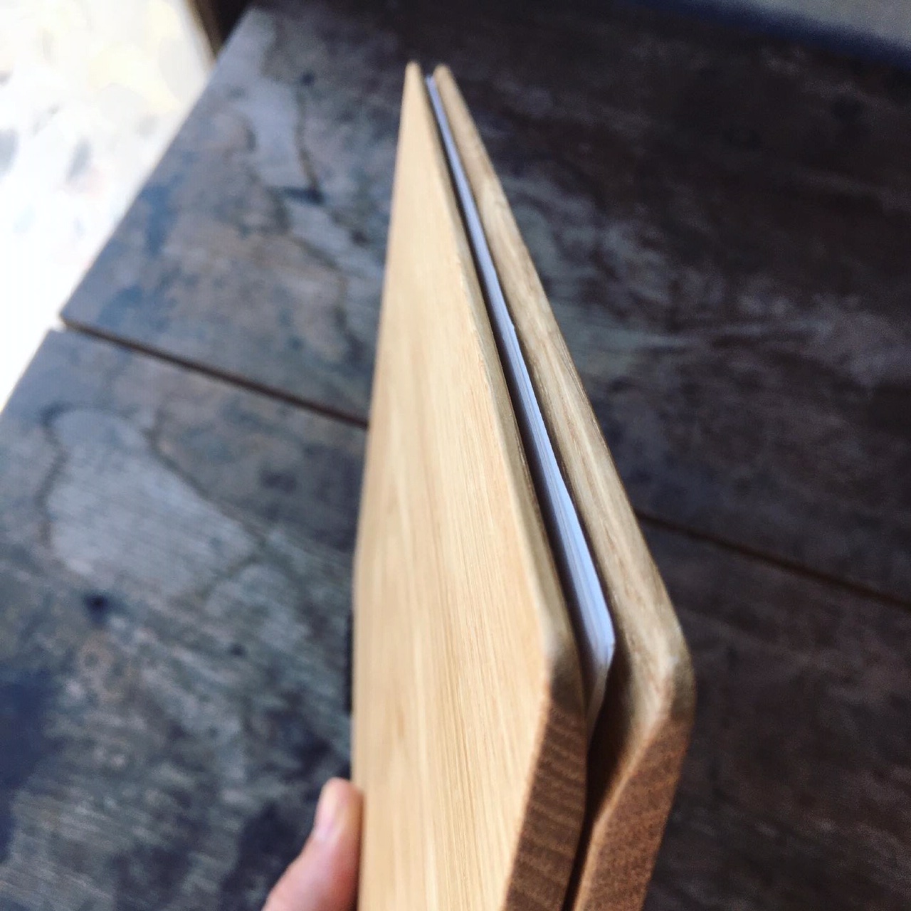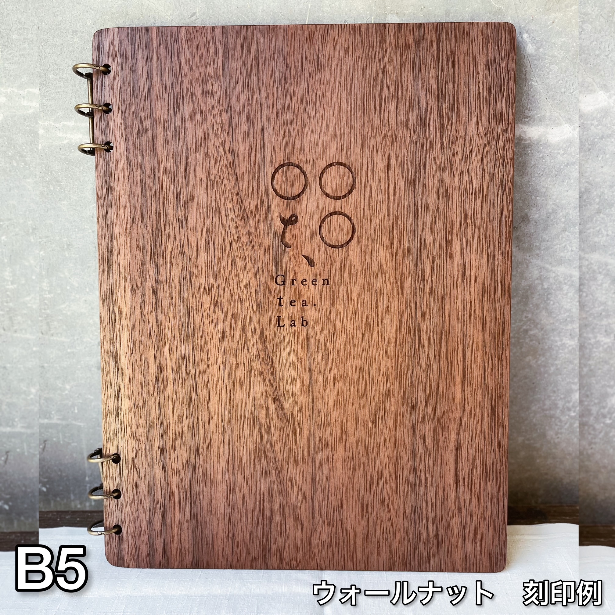 木の メニューブック フォトアルバム5mm無垢一枚板。安価な薄皮木目貼り合わせ板とは異なります。色や木目が綺麗な堅木(反りが出やすく加工が難しかった)に、反りを軽減する特殊な塗装方法を採用。「ありそうでない」天然木の色をそのまま活かした、無着色の木製リングメニューです。