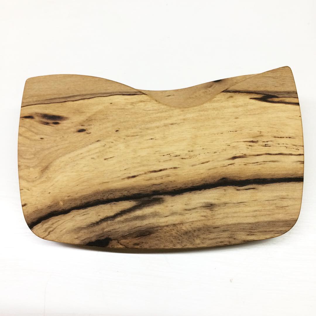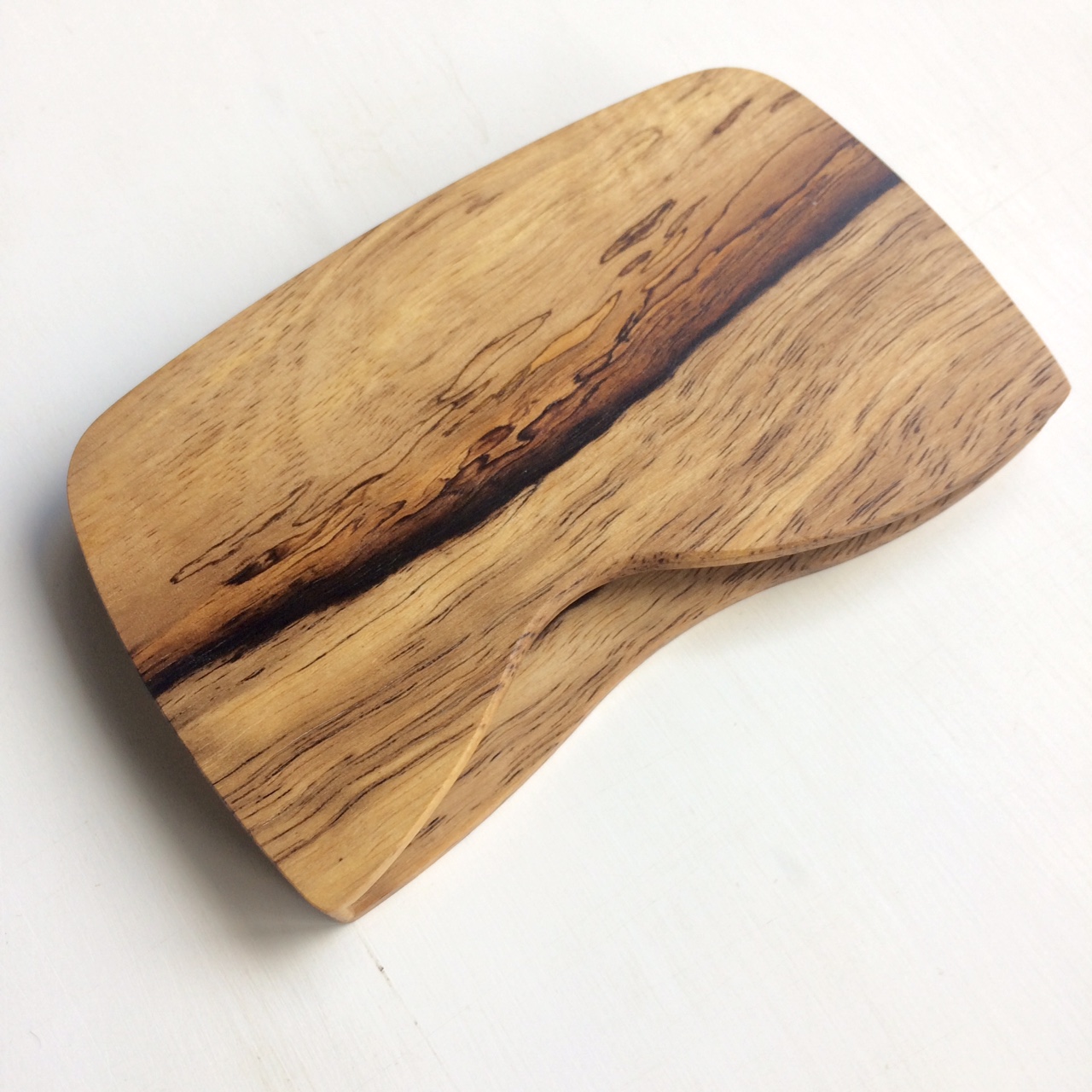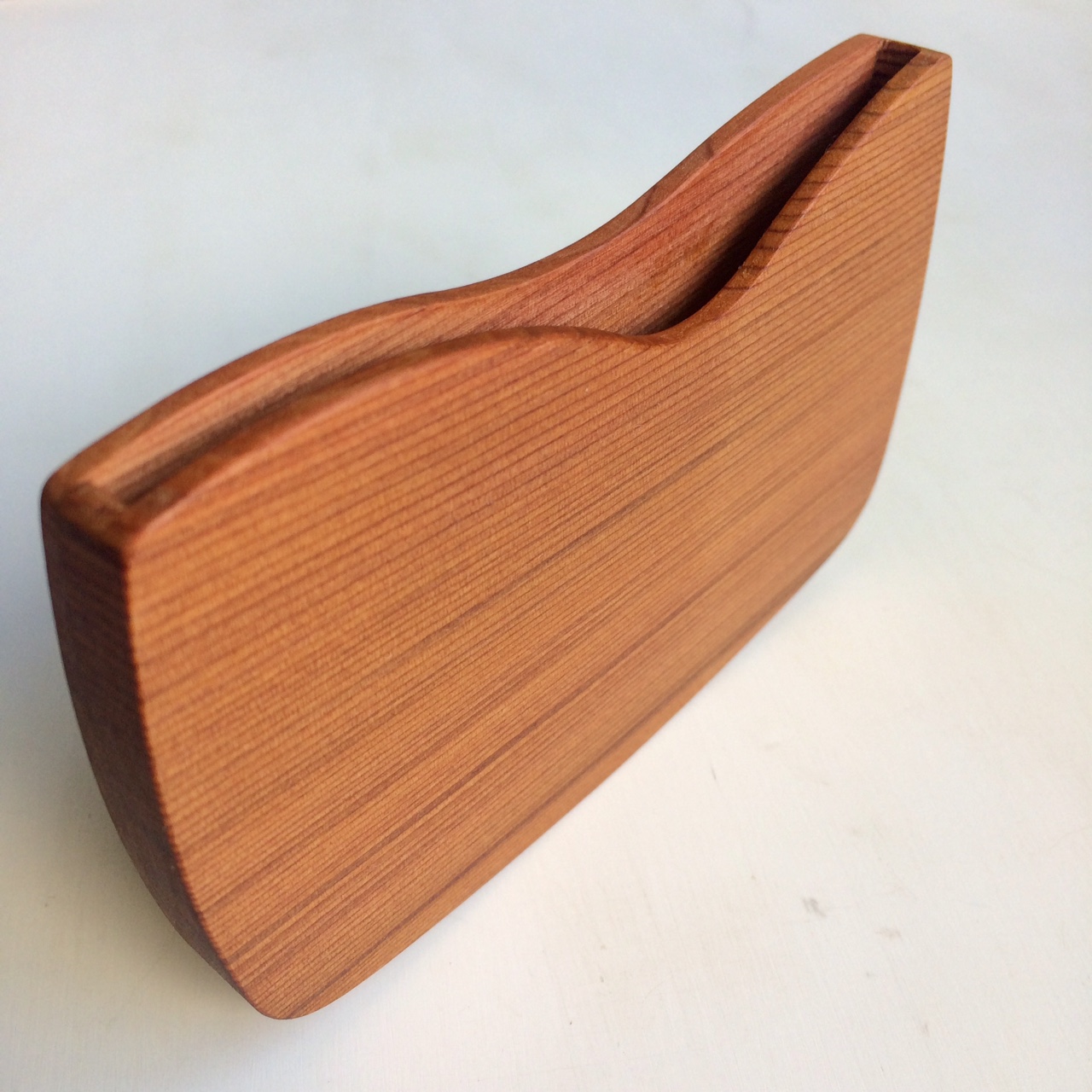 緩やかなカーブで持ちやすくポケットに入れやすいフォルムです。木製名刺ケース 黒柿