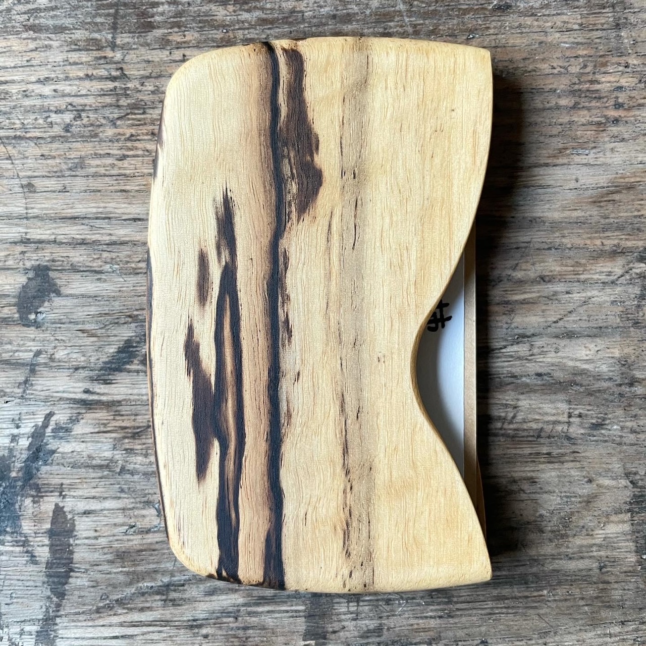 背面の板も少しだけくぼませて、爪の長い方でも取り出しやすくしました。