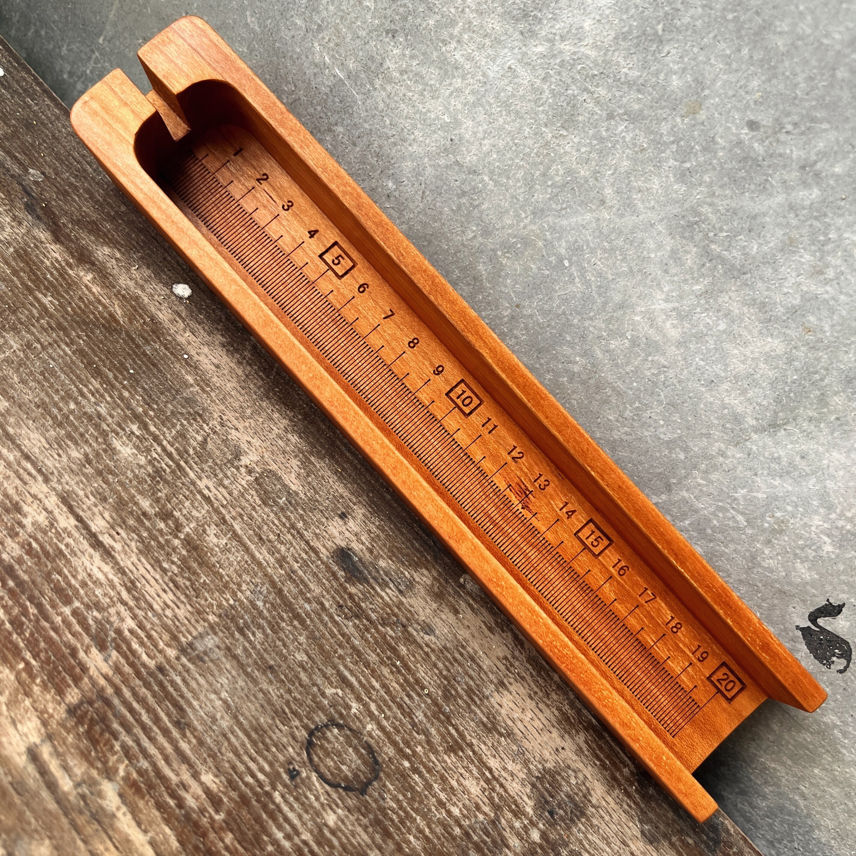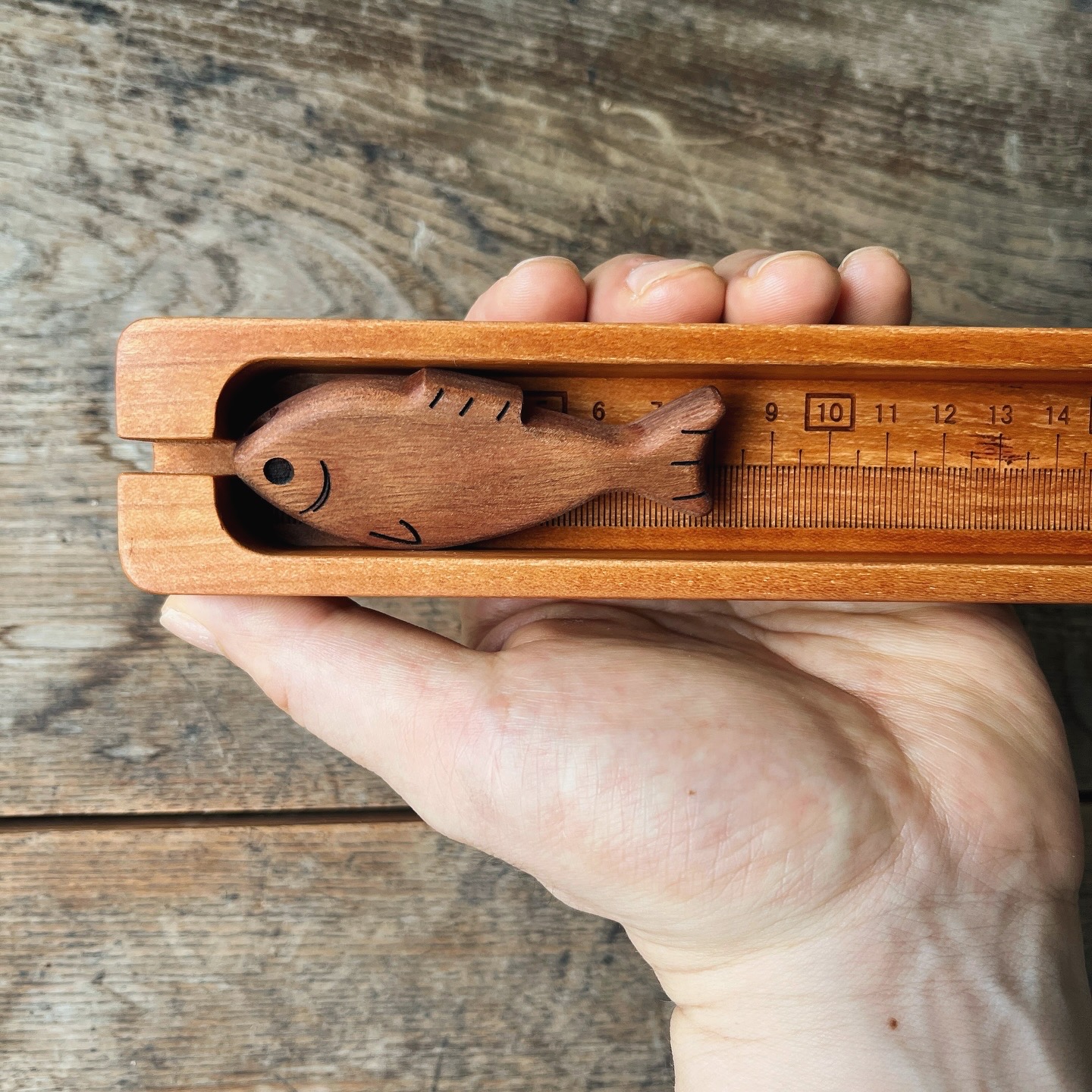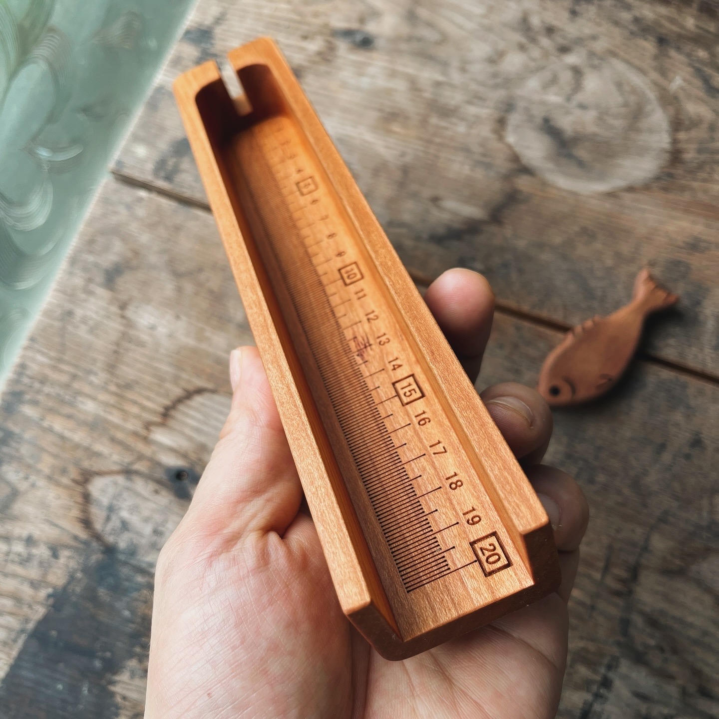 フィッシュメジャー 角材くり抜き、1目盛りずつレーザー刻印をしてあります。