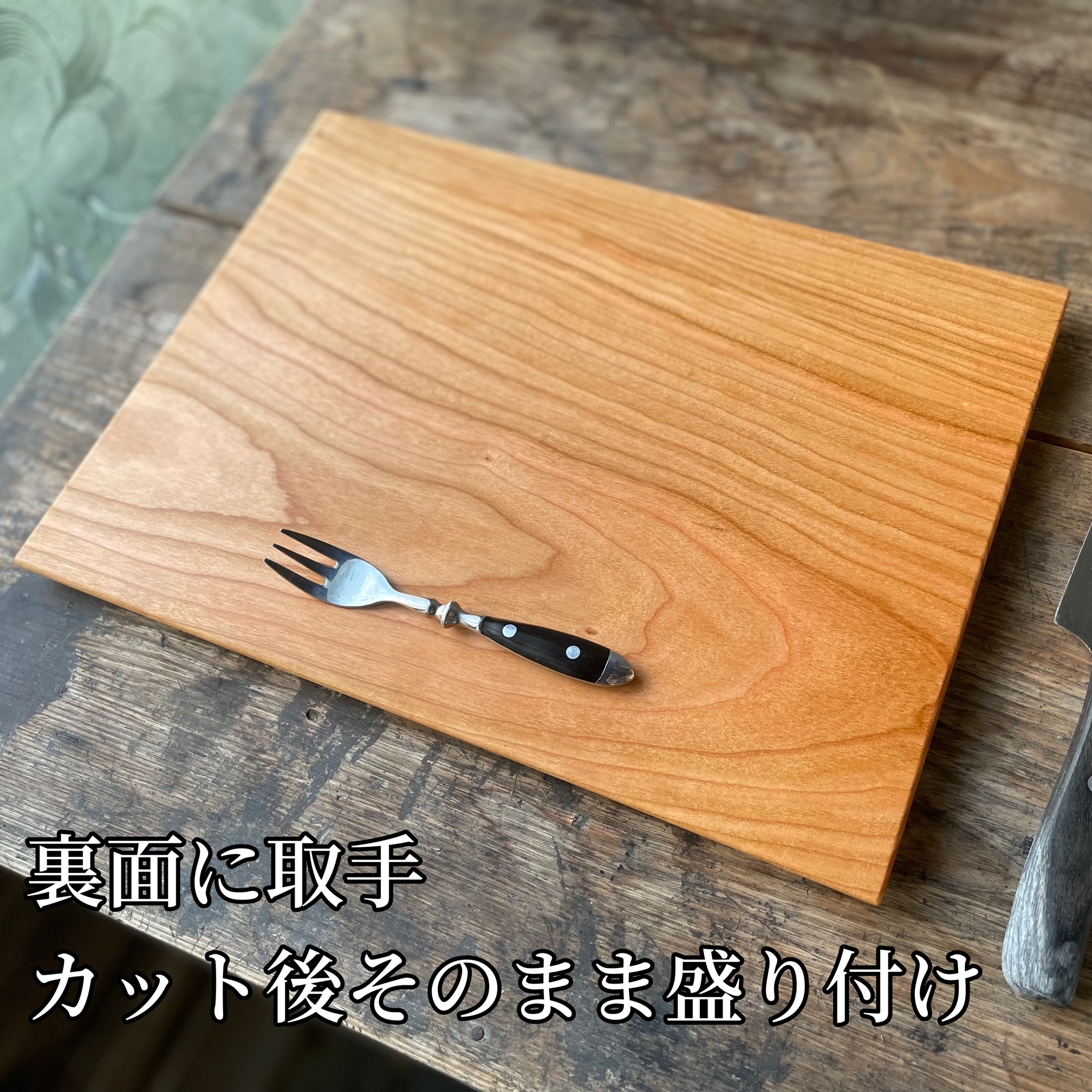 ウッドプレート木のプレート裏面に取手彫り込み 切ってそのまま盛り付け、食皿として使えます。
