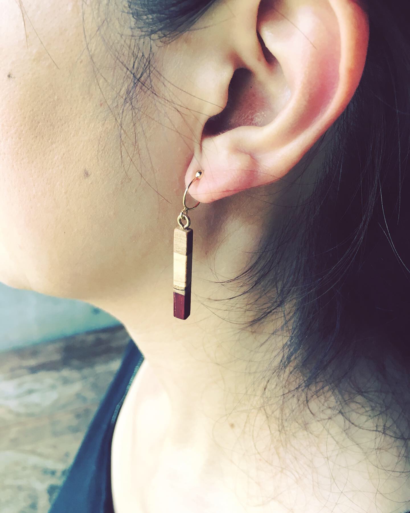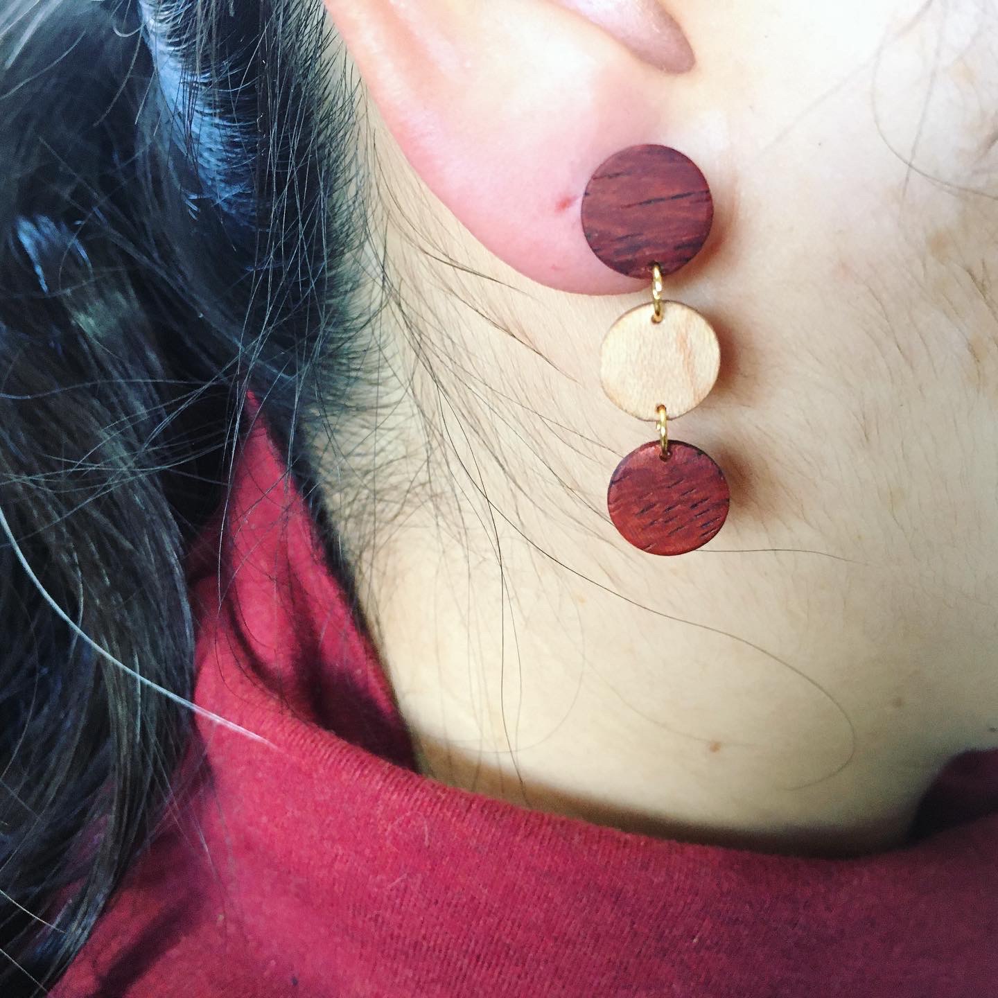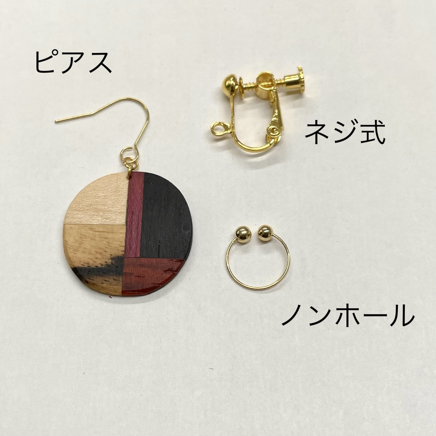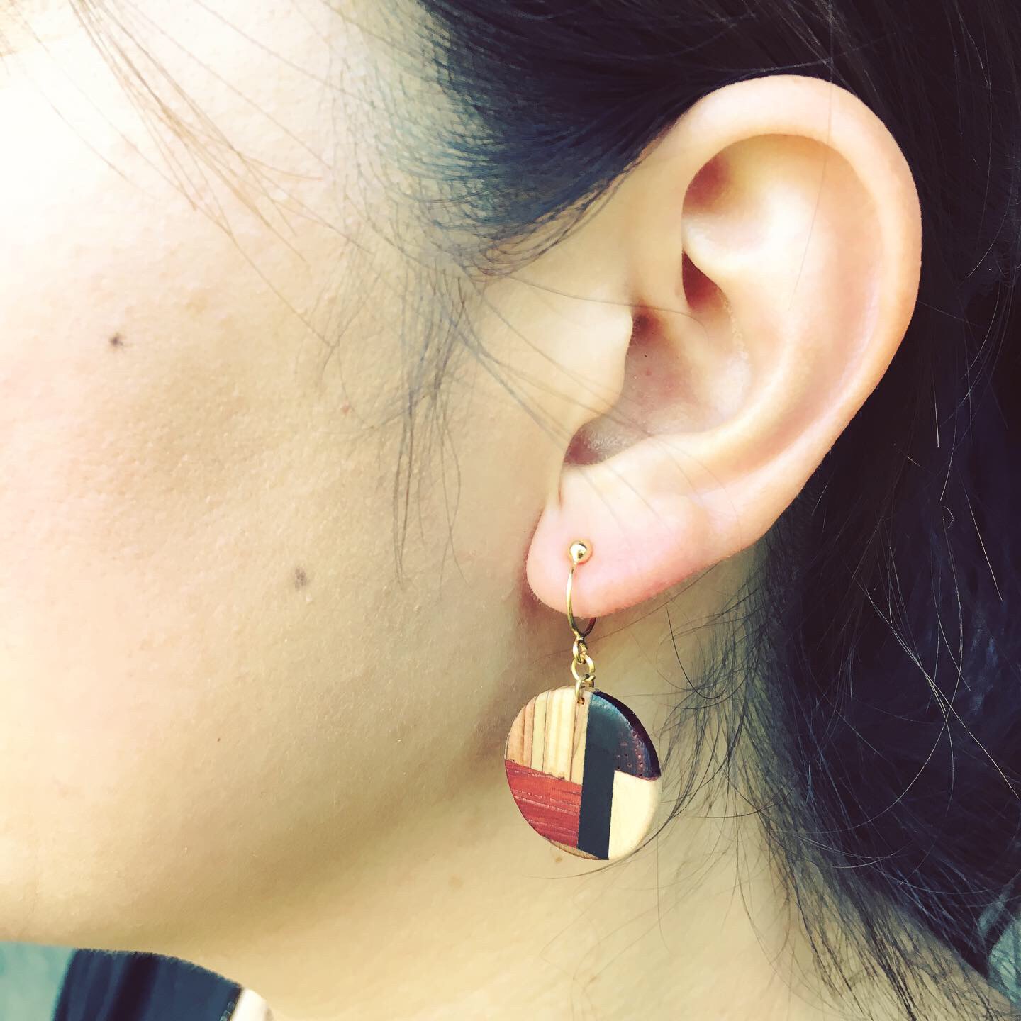 それぞれの木材の色の違い、木の温もりが詰まったステキなピアスでした。写真を送って頂けたので、その中から自分の好きなモノを見つける過程も楽しかったです。雰囲気がそれぞれにあって、だいぶ迷いましたが♪