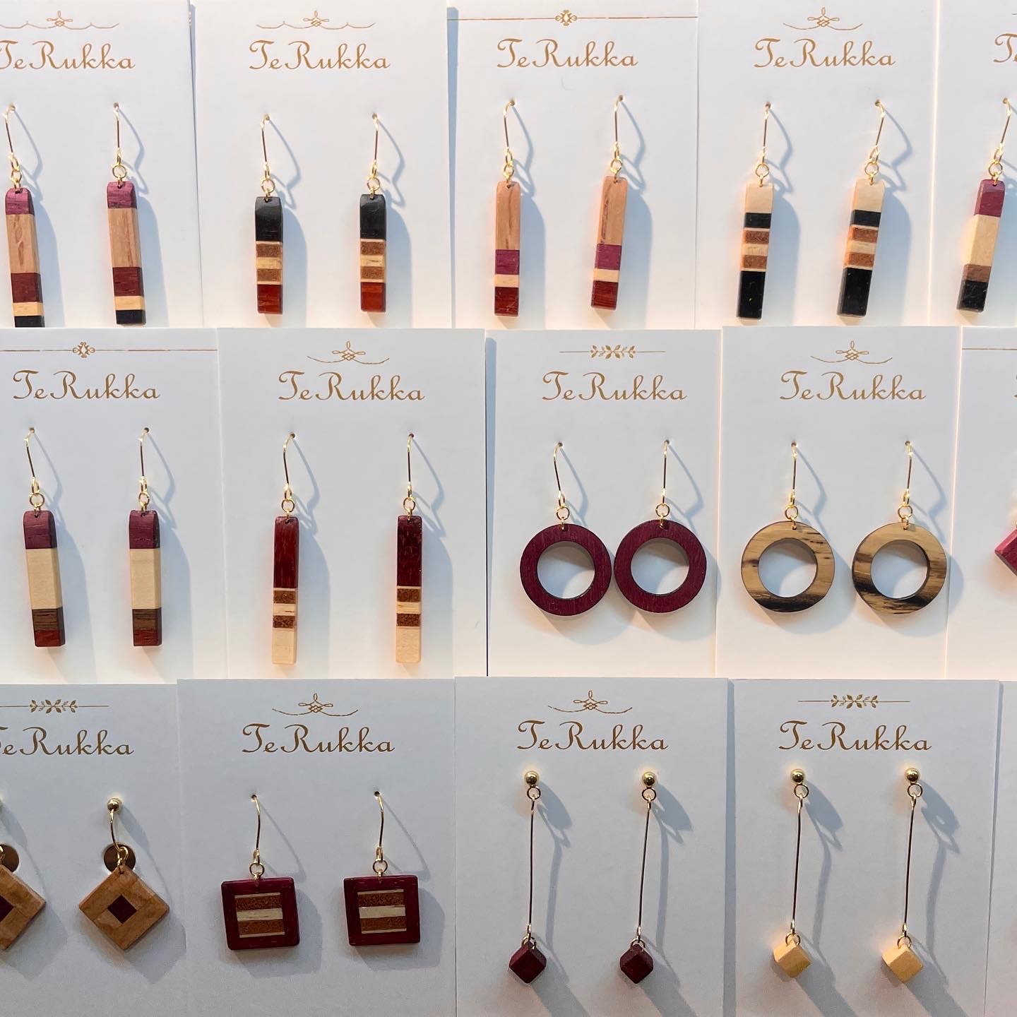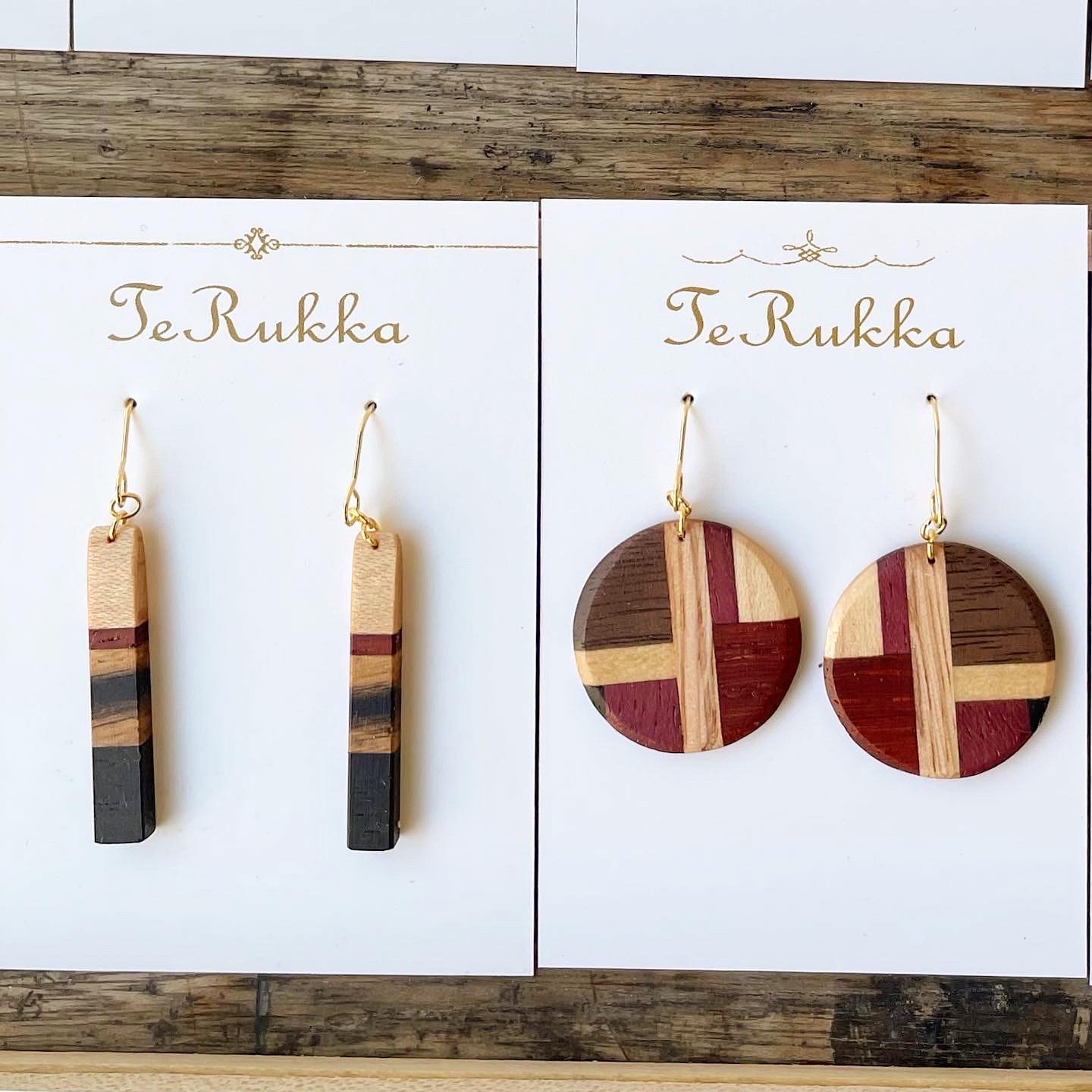 無着色で鮮やかな銘木を寄木した一点物の木のイアリング又は木のピアスです。