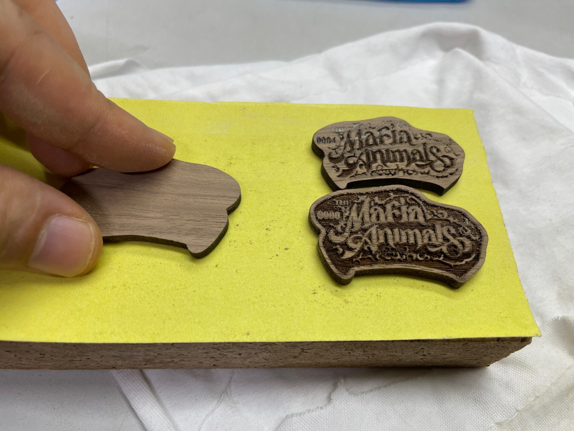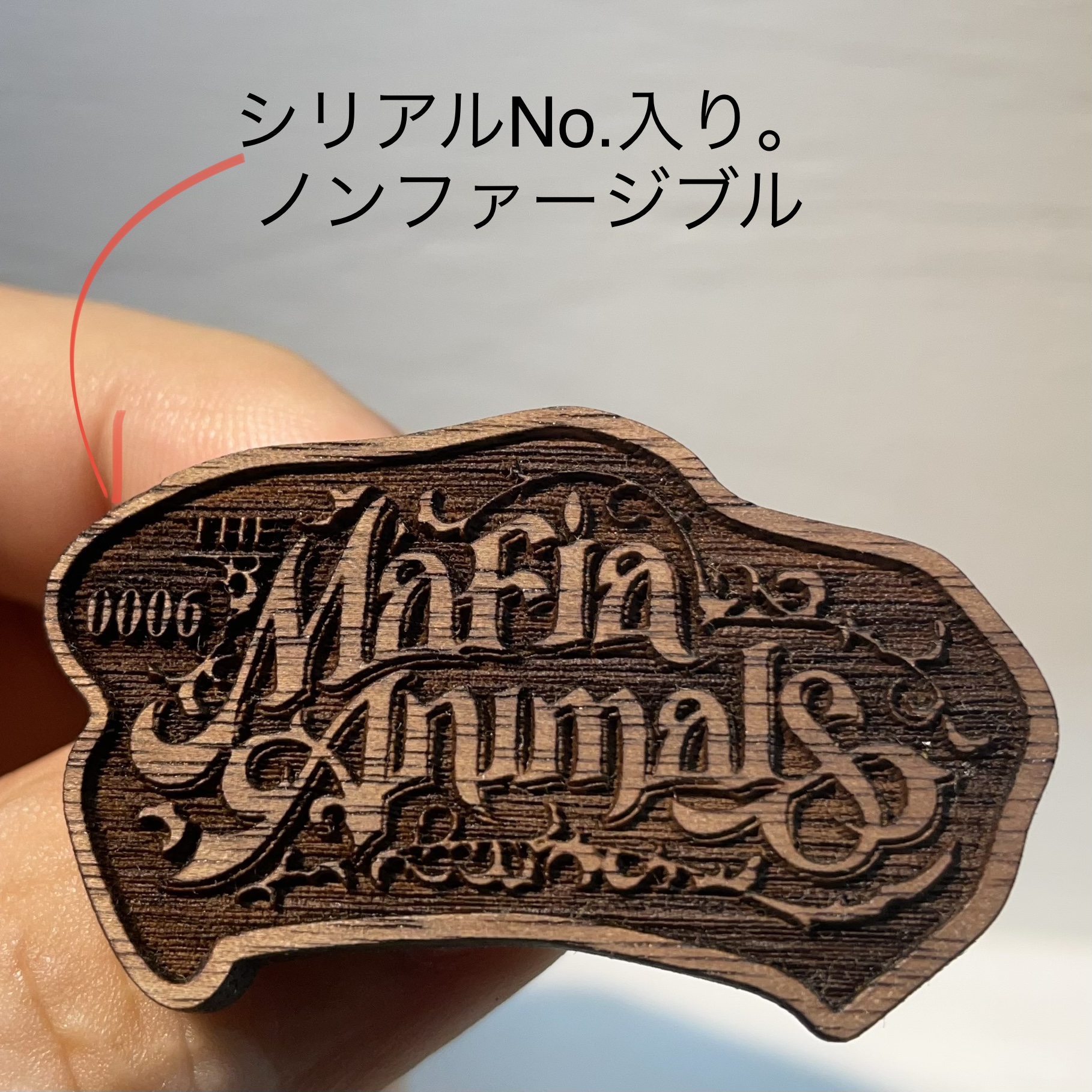 The Mafia Animals が大好きなので購入☺️タダでさえカッコいいロゴが、味のあるウォールナット材で完全再現🔥加工も細かく陰影もメリハリが効き、TMAの世界観が抜群に表現されています。撥水塗装もされているとのことで、丈夫で長持ち。シリアルナンバーも刻印して頂いて、唯一無二の愛着もひとしおです。さりげなく身につけて、気分をアゲています。大切にさせて頂きます✨