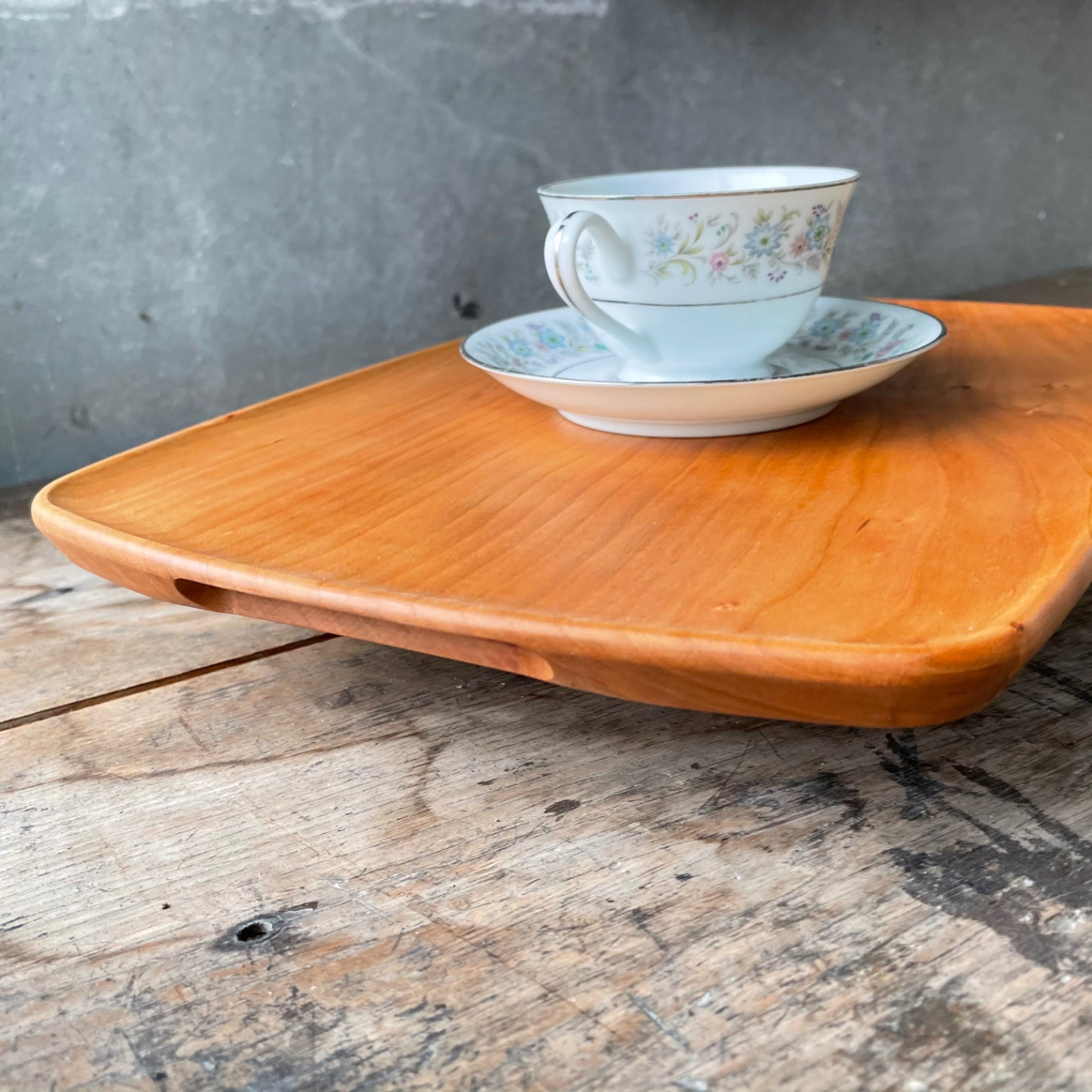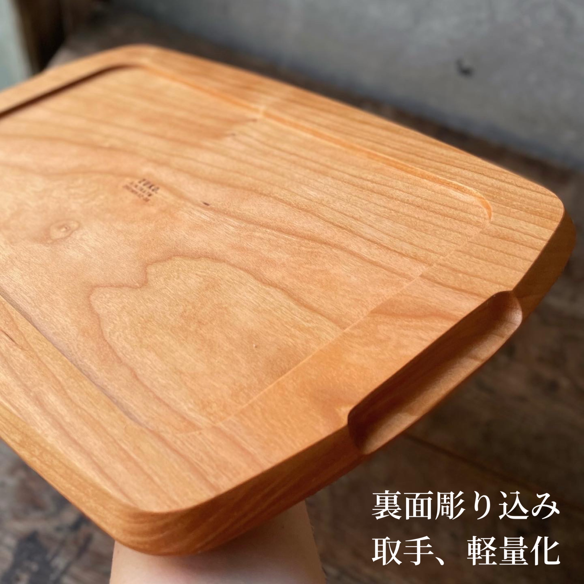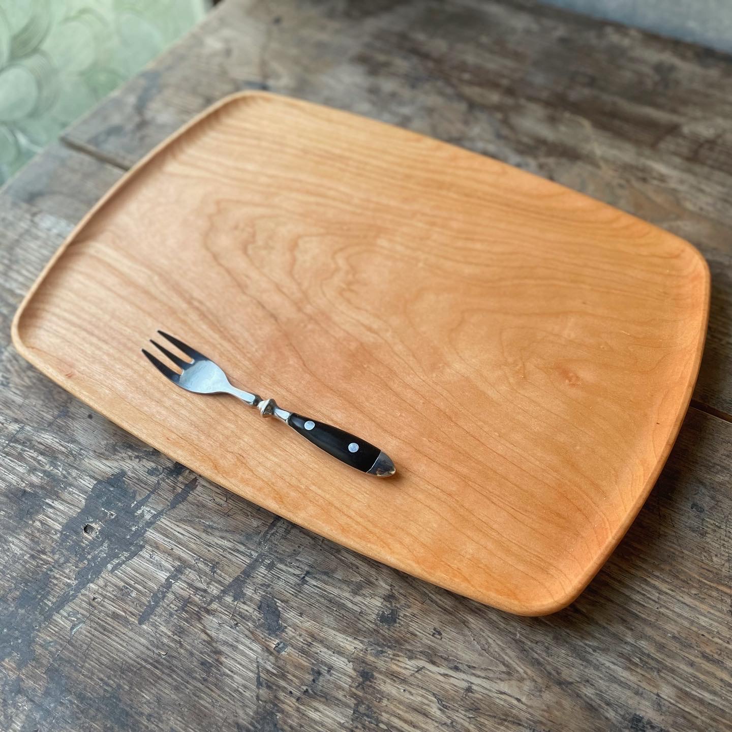 チェリー材の赤みのある温かな色と、なだらかで厚みのあるフォルムが、とてもステキです。お膳代わりに使うのにも、ちょうどよい大きさでした。大切に使いたいと思います。ありがとうございました。