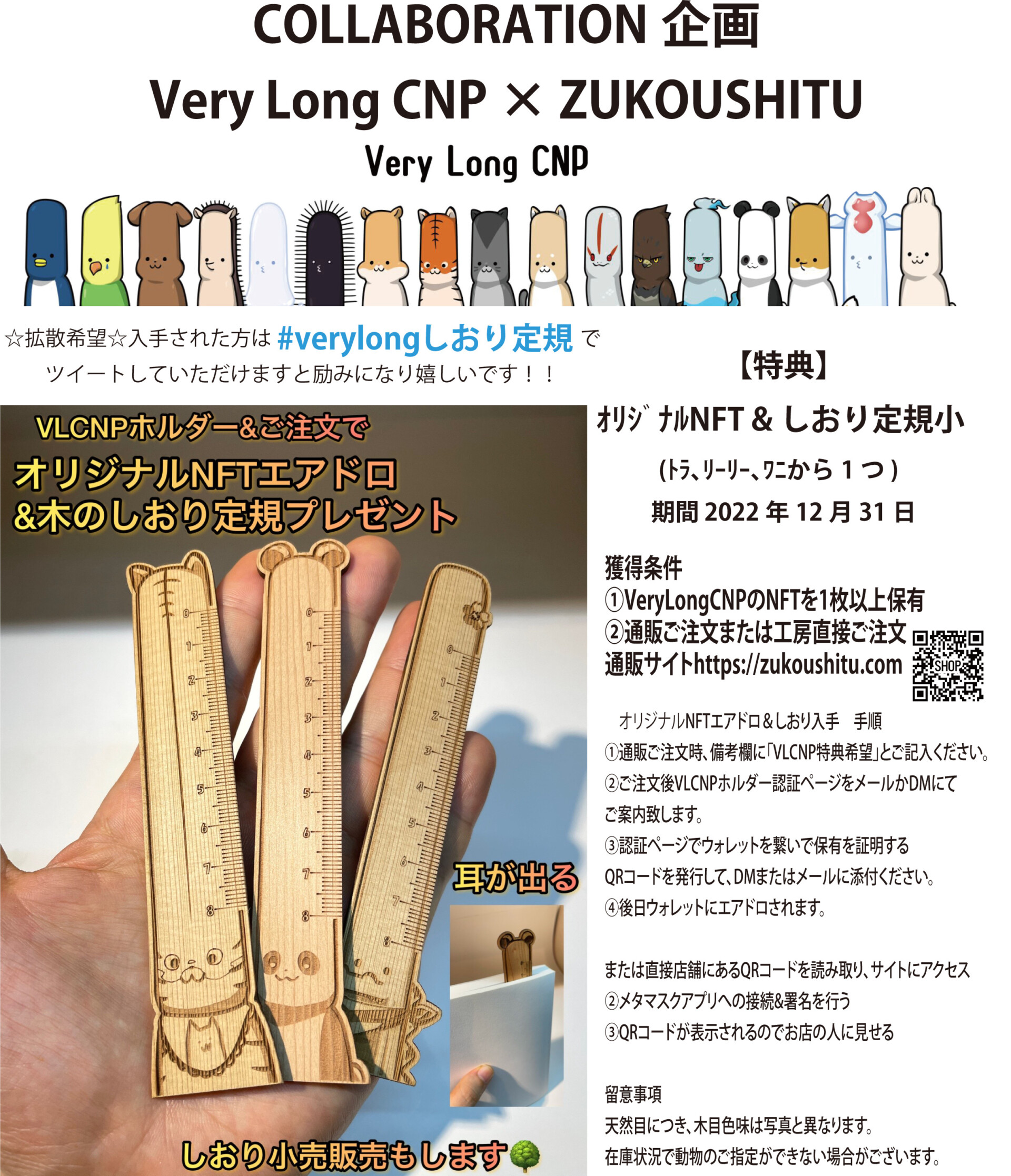 VLCNPホルダー様はご注文時に備考欄に「特典希望」とご記入しますと、オリジナルNFTエアドロ&しおり定規8cmもう一枚プレゼント(ご指定はできません)