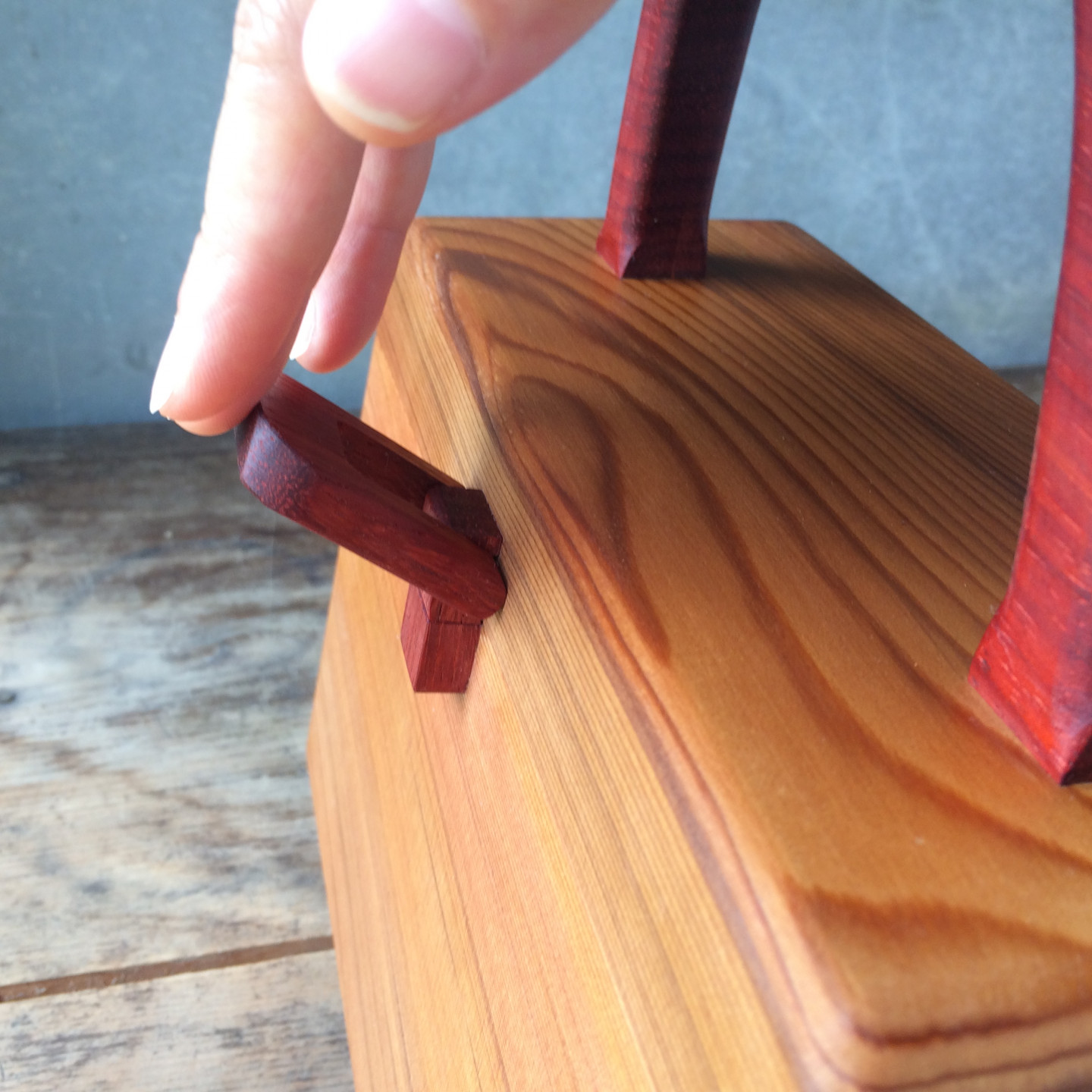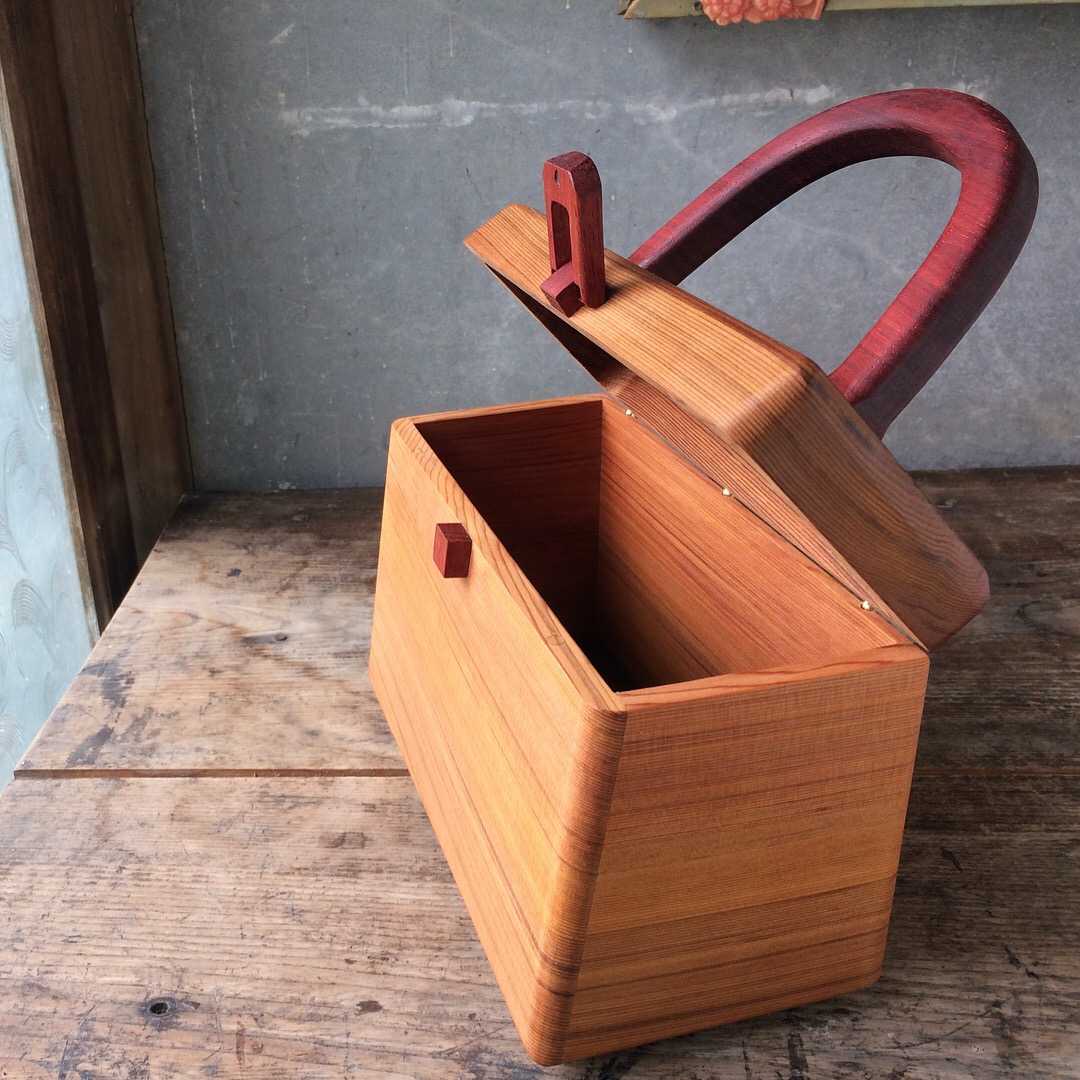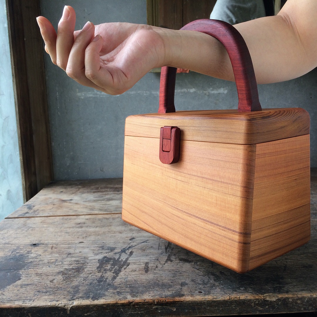 留め具、持ち手は丈夫な広葉樹を採用し、本体は軽量で年輪の詰まった丈夫な針葉樹の米杉を採用しました。