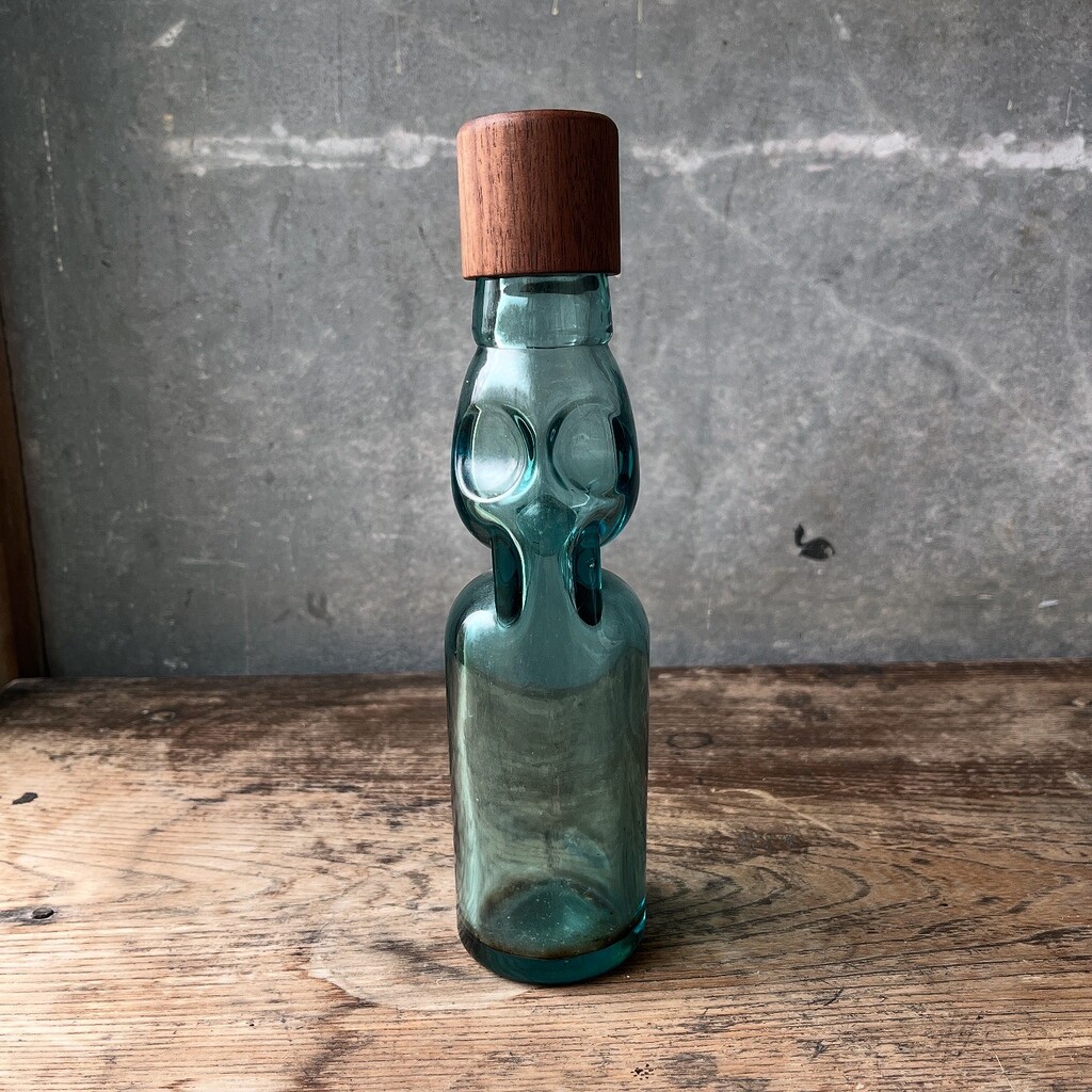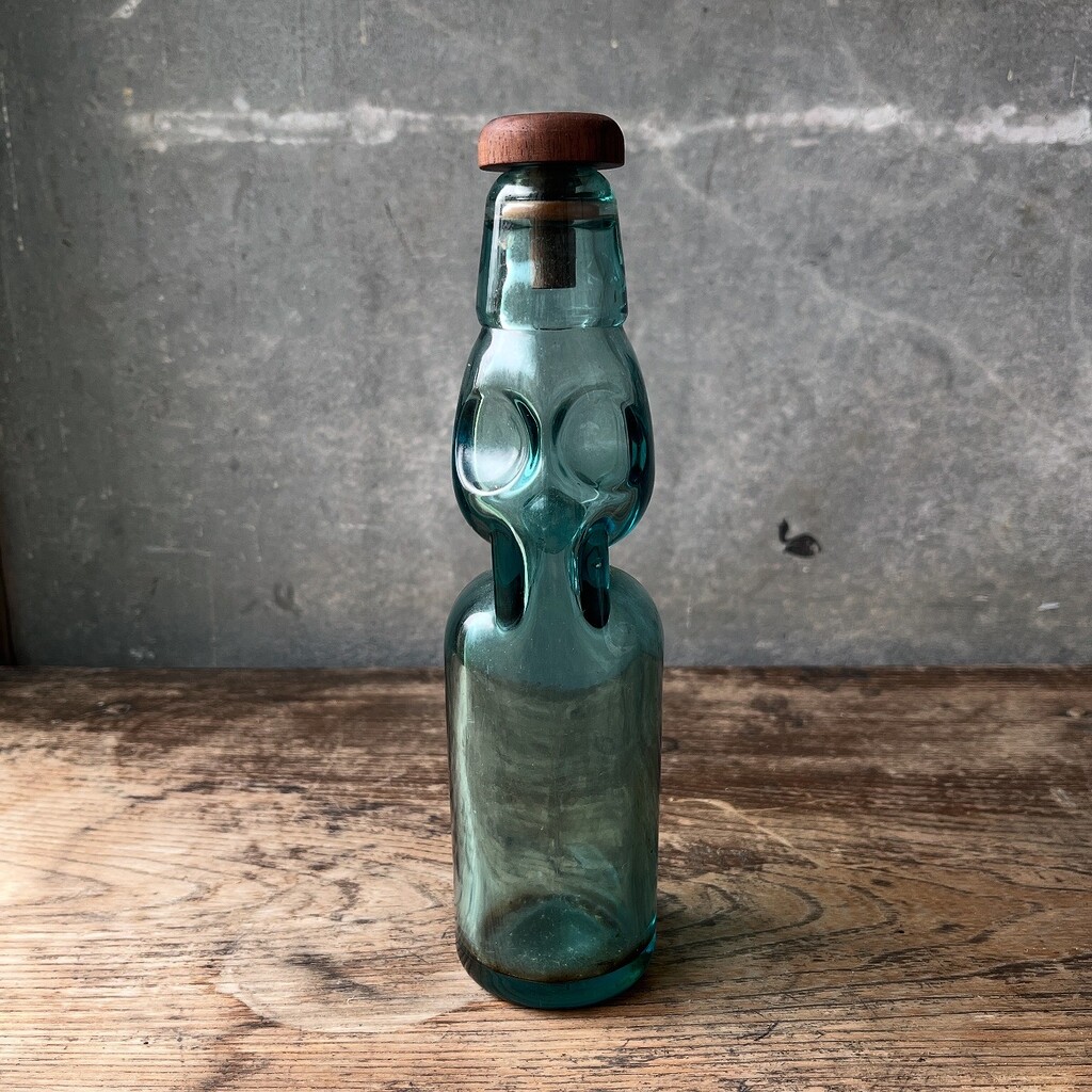 飲み口まで一体ガラスになっている私が小学生の頃の昭和のラムネ瓶。口当たりが優しくて確かに復刻されたら嬉しいです♪(日本耐酸硝子NT製らしいです)ちょうど自宅押入れの奥に4本ありました。少年の私の収集癖がここで活かされるとは嬉しいです♪