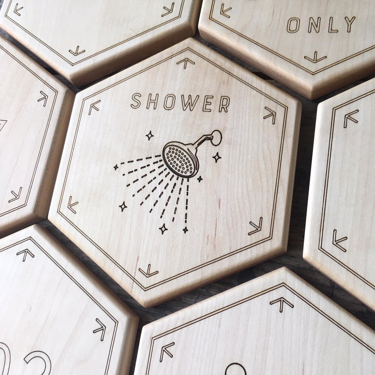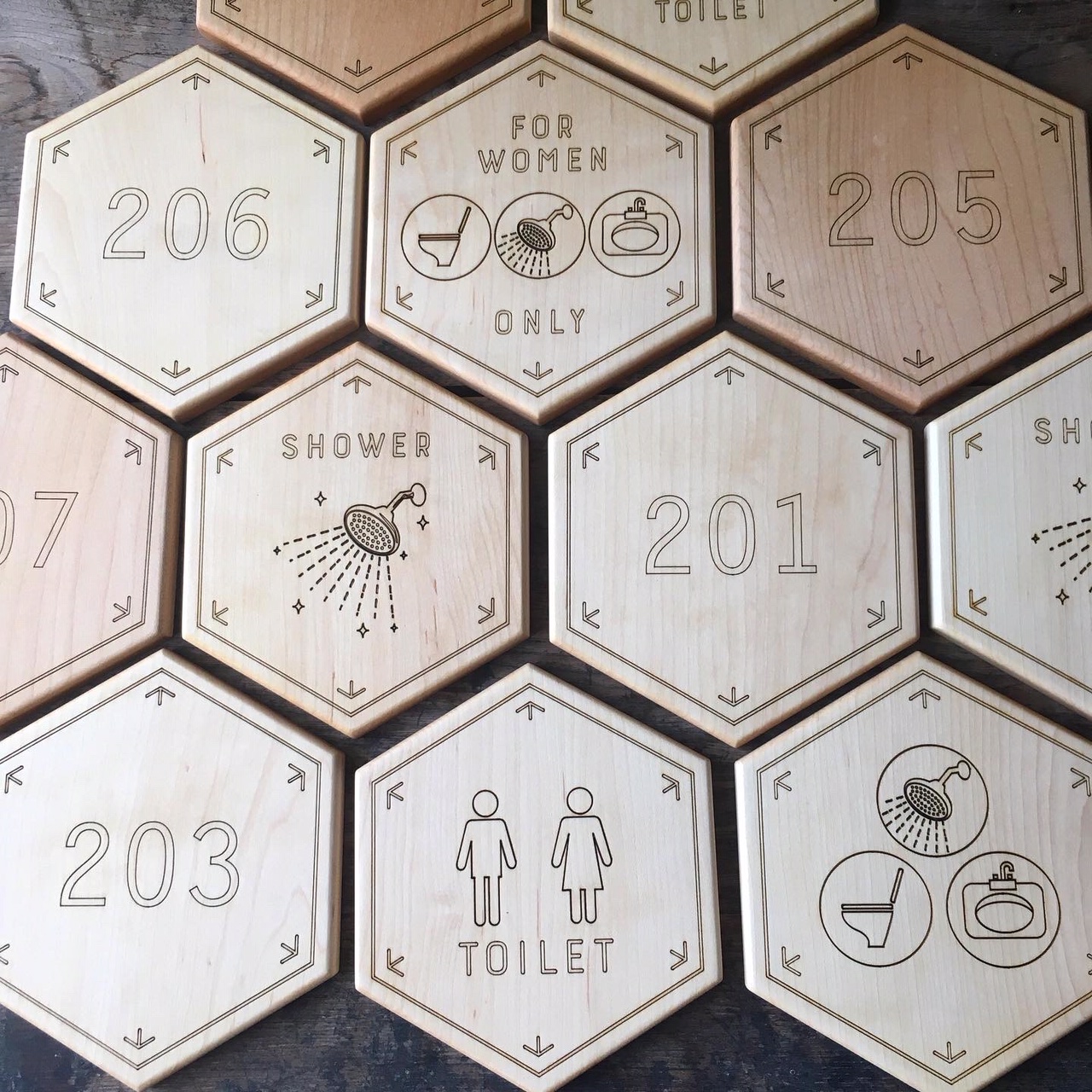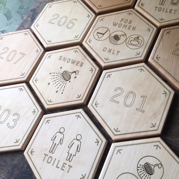 tu.ne.Hostels(千葉館山)様よりホステル六角ルームサインプレートの刻印特注でのご注文を承りました。