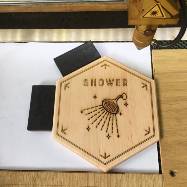 ハードメープルに緻密なレーザー刻印を施したルームサインです。