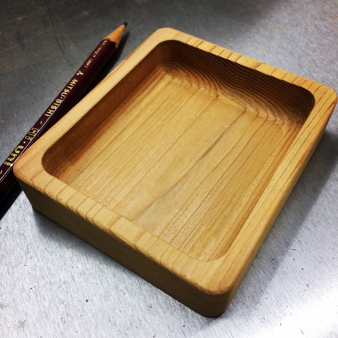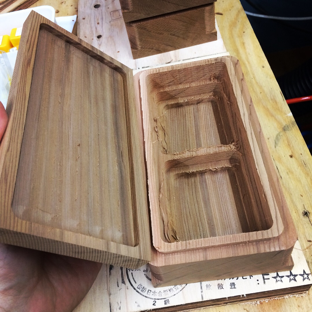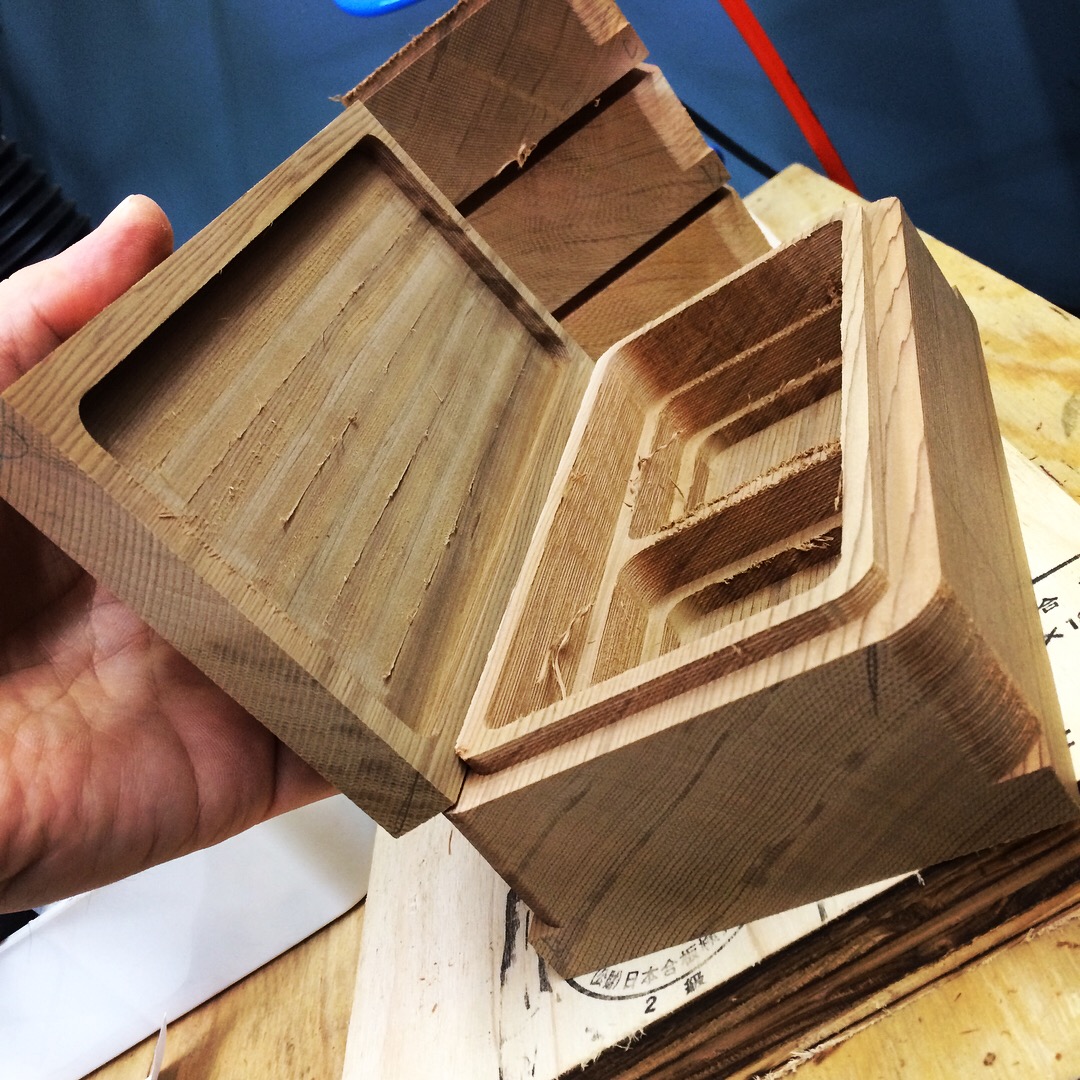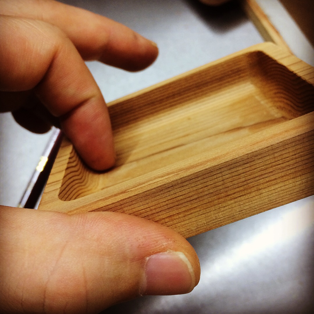 上縁に水が浸入しにくい暖を設け、蓋の裏も軽量化を兼ねて彫り込みました。