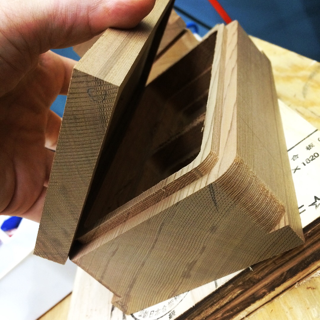 一般にキス用餌箱は5枚の板をボンドで接着して、蓋を付けた造りです。