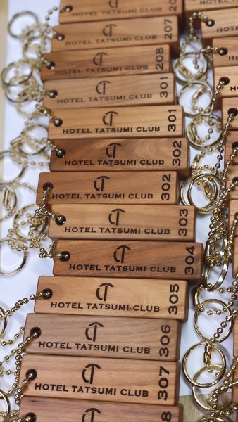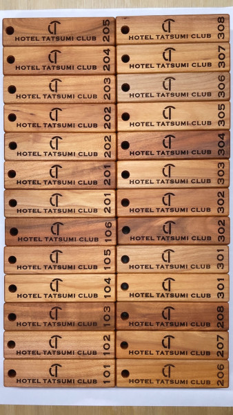 千葉市原のHOTEL TATSUMI CLUB(旧 三井E&S 辰巳倶楽部)様のルームキーホルダーを製作させていただきました。