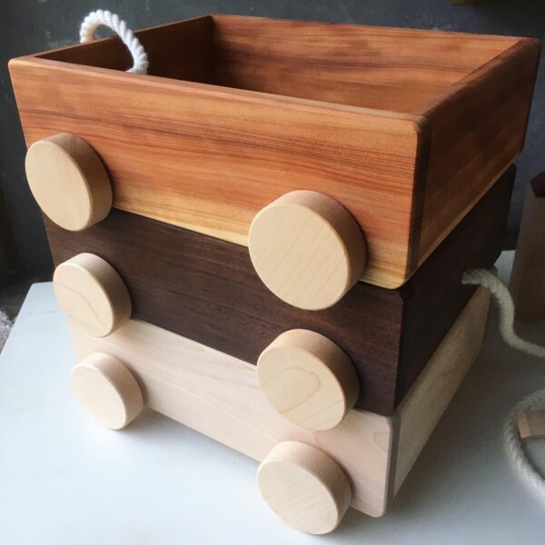 堅木の構成なのでズシリと重いです。(写真の例は箱約B5サイズ高さ8cmで3kg~4kg)