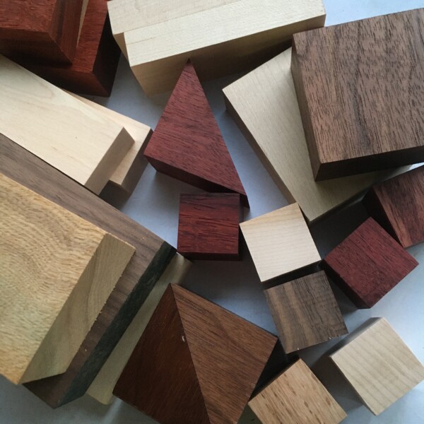 天然色の世界の銘木。パドック赤木やパープルハート紫の木がポイントです。千葉の木マテバシイ白木も含まれます。(形樹種は毎回組み合わせ、木目、色が異なります。ご相談ください。)