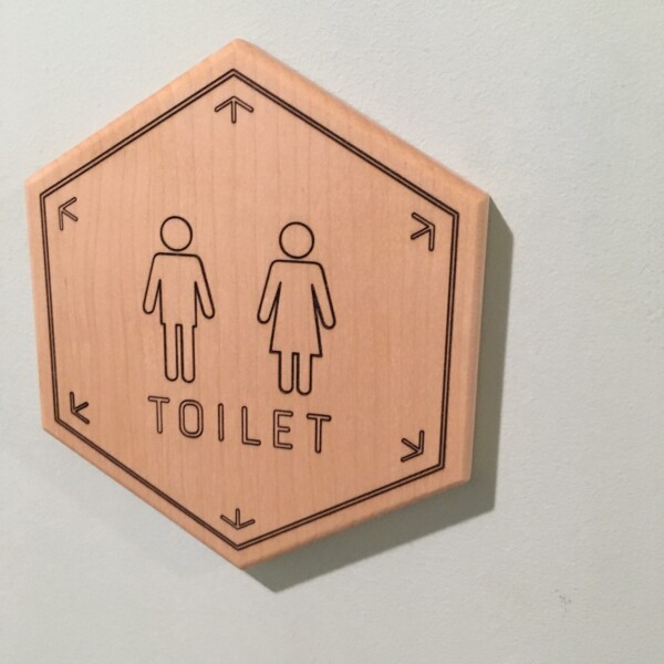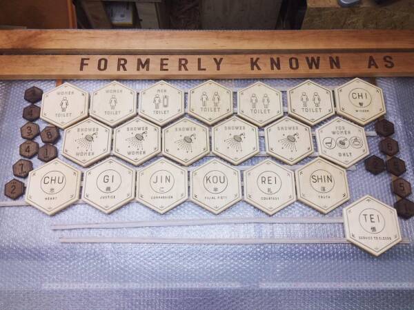 ルームサインは地名、六軒町にちなみ六角形ヘキサグラム、