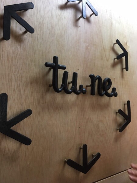 こちらはチェックインカウンターにあるアイアンのサイン。
