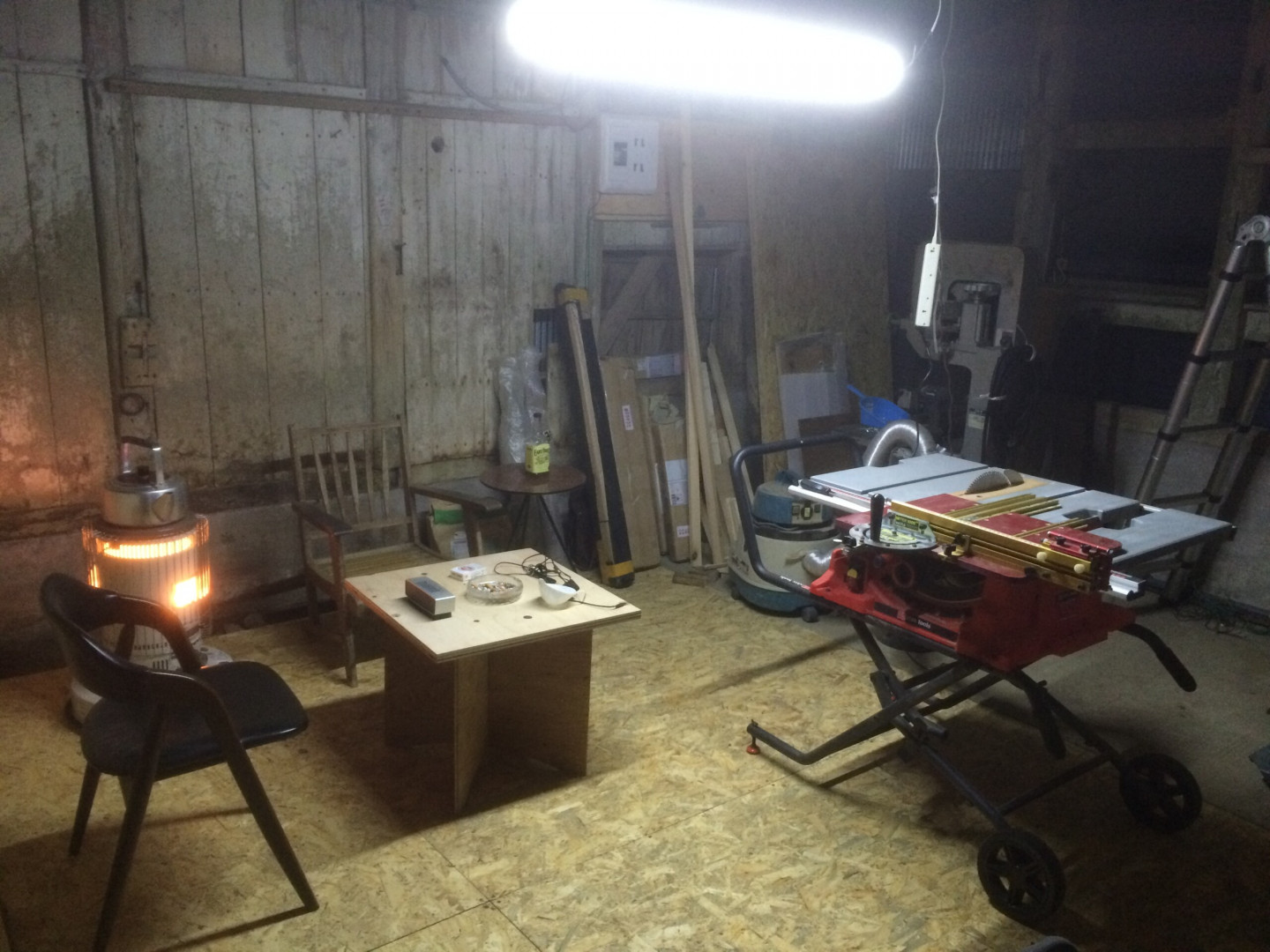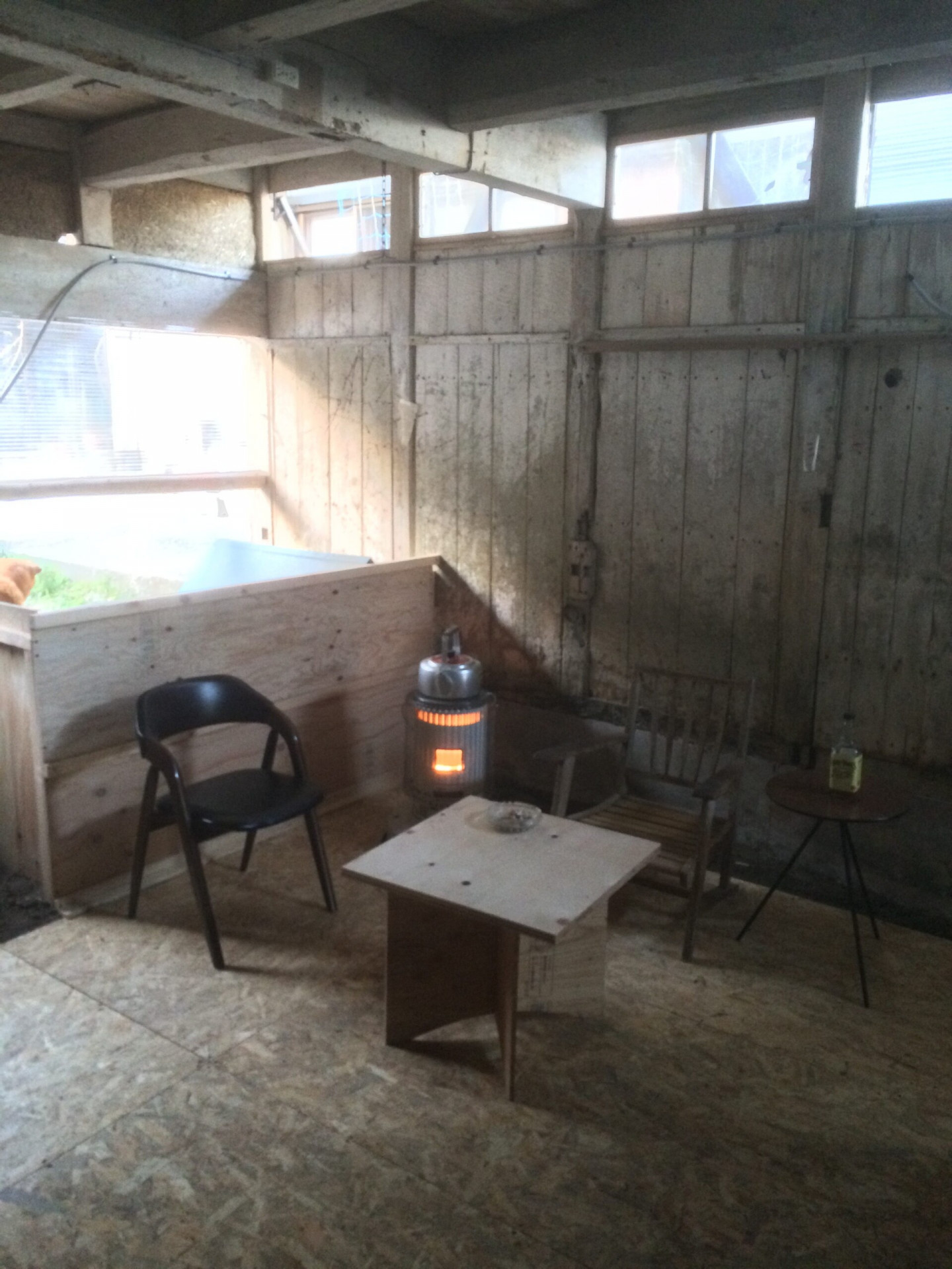やっと床が貼れました。OSB合板仕様です。土間をスコップで削ってならすのがとても大変でした(汗